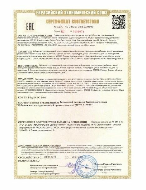 СохранитьПодушка натуральный пух 40% перо 60% коллекция "Неженка" 70*70 Belashoff интересное: