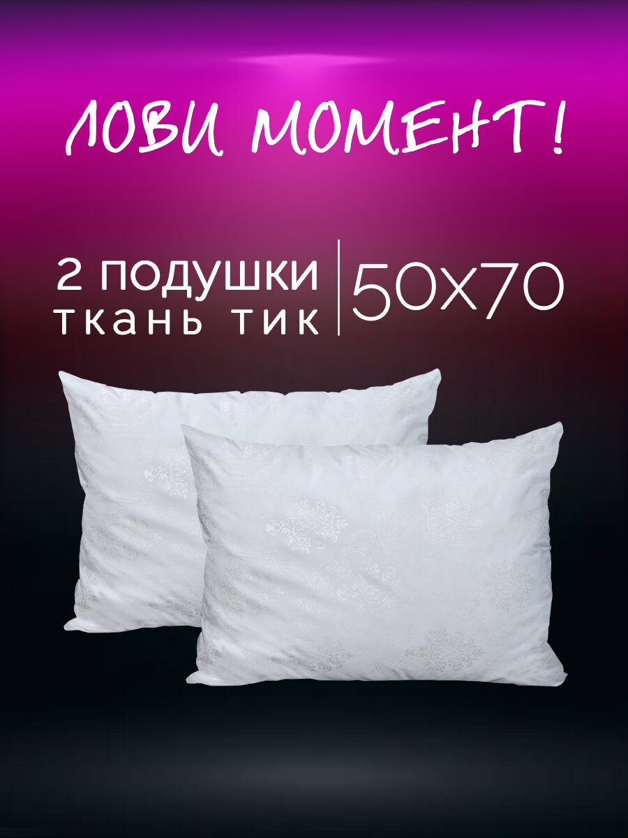 Подушка 50х70 - 2 шт Жаккард б/з, наполнитель-силиконизированное волокно, Чехол из тика интересное: