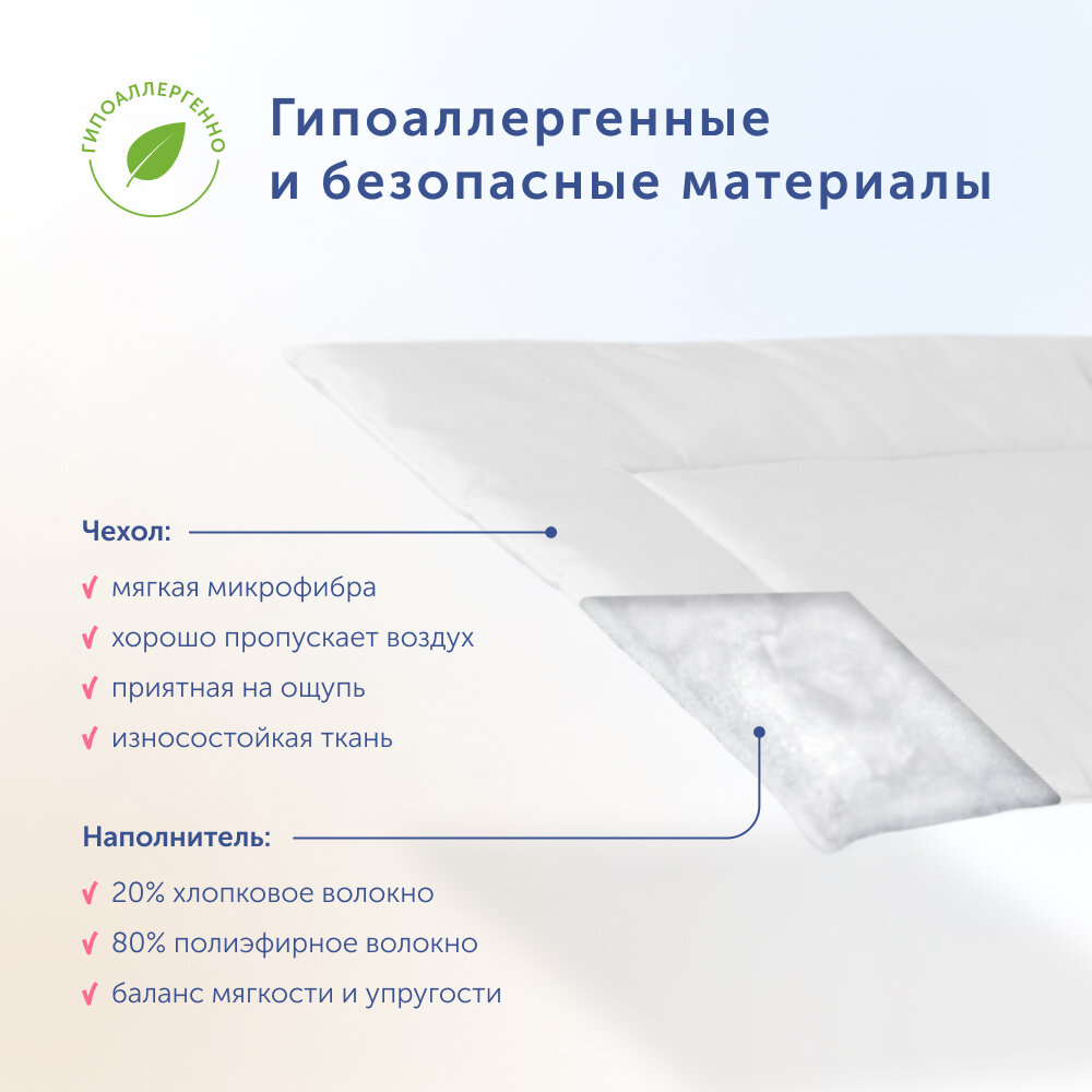 Ортопедическая подушка buyson BuyMini, 55х35 см, детская, высота 3 см интересное: