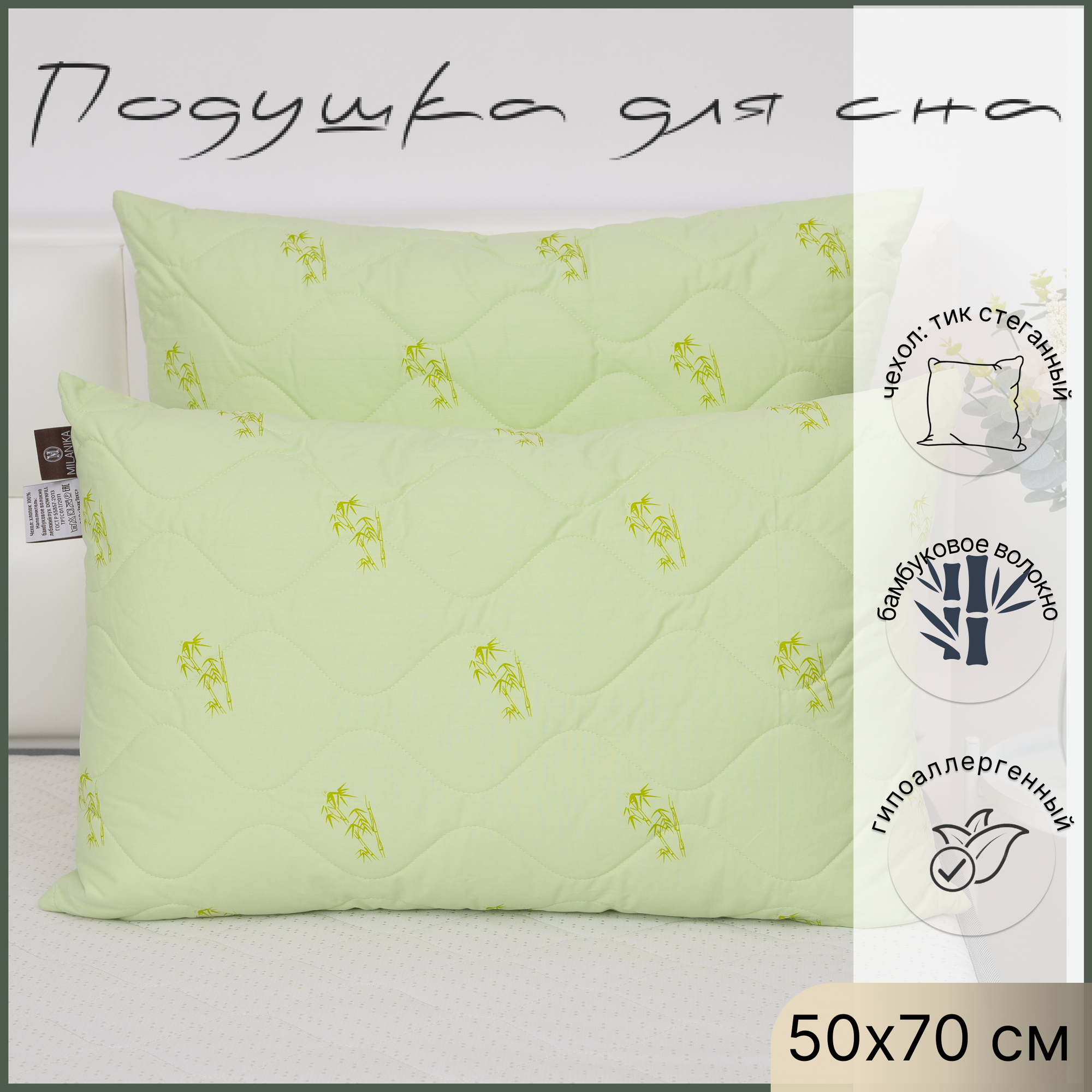 Подушка для сна на молнии Миланика Премиум, бамбук 100 % хлопок 50х70 см интересное: