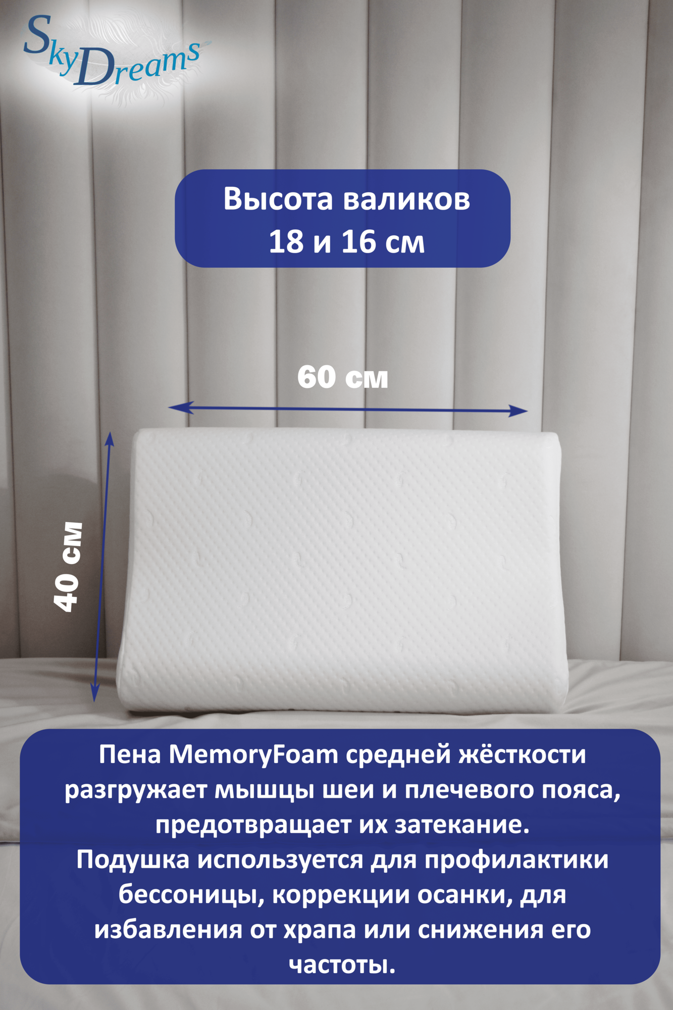 СохранитьSkyDreams Ортопедическая подушка WAVE с эффектом памяти, с двумя валиками, 60х40х16/18 см интересное: