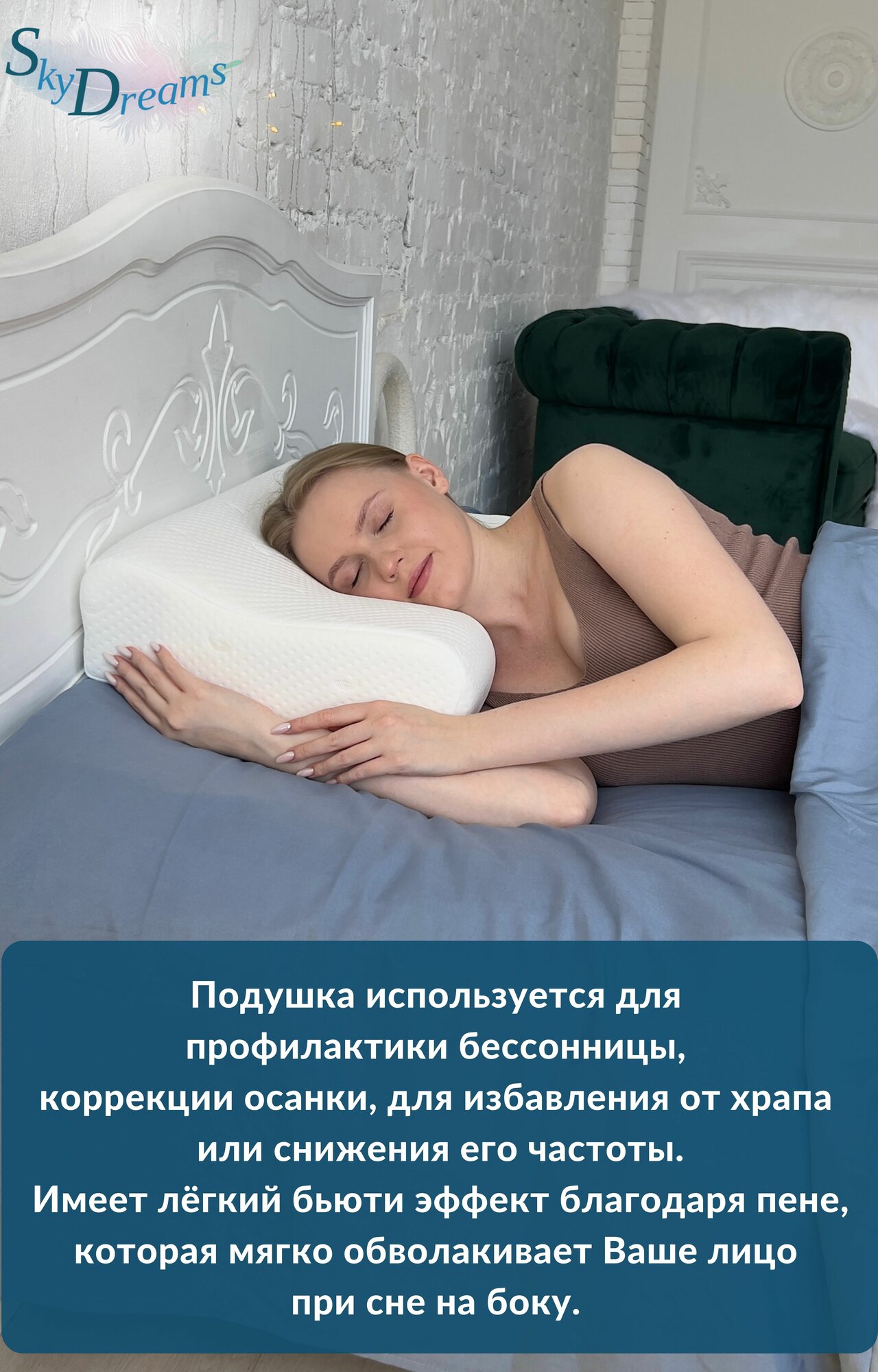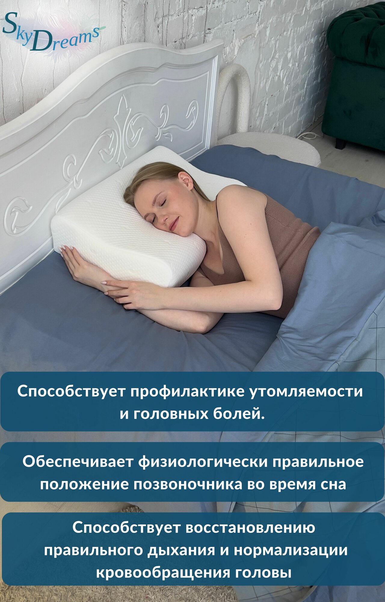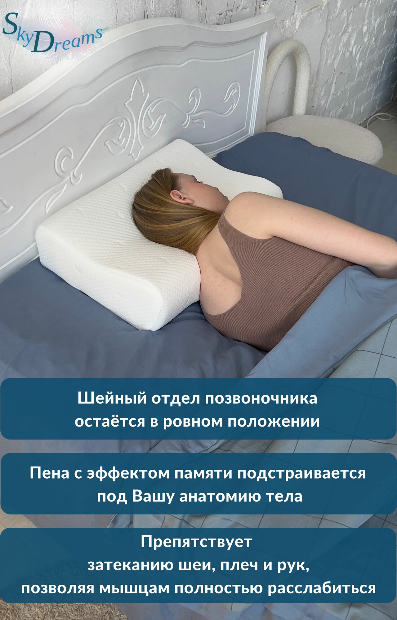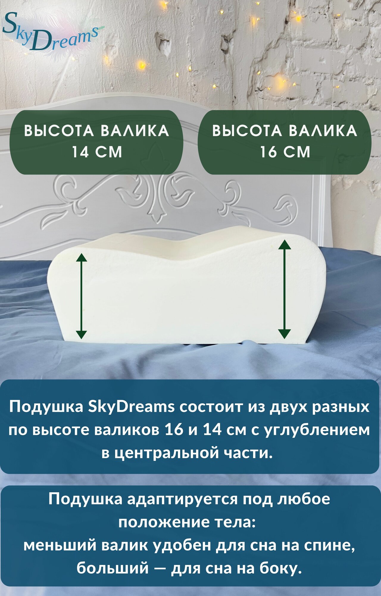 СохранитьSkyDreams Ортопедическая подушка с эффектом памяти, с двумя валиками, 60х40х16/14 см, трикотаж п/э интересное: