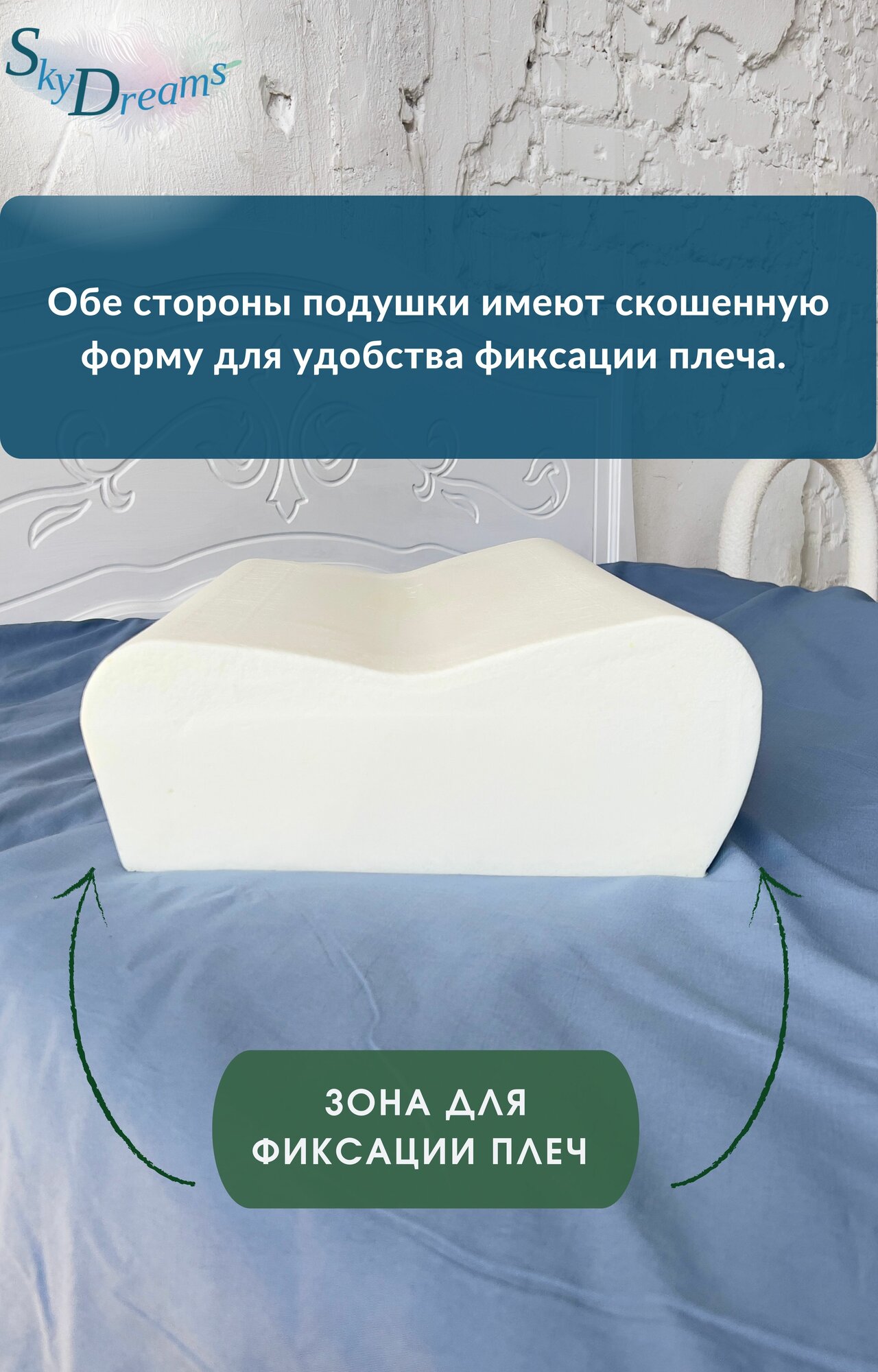 SkyDreams Ортопедическая подушка WAVE с эффектом памяти, с двумя валиками, 60*40*13/11 см