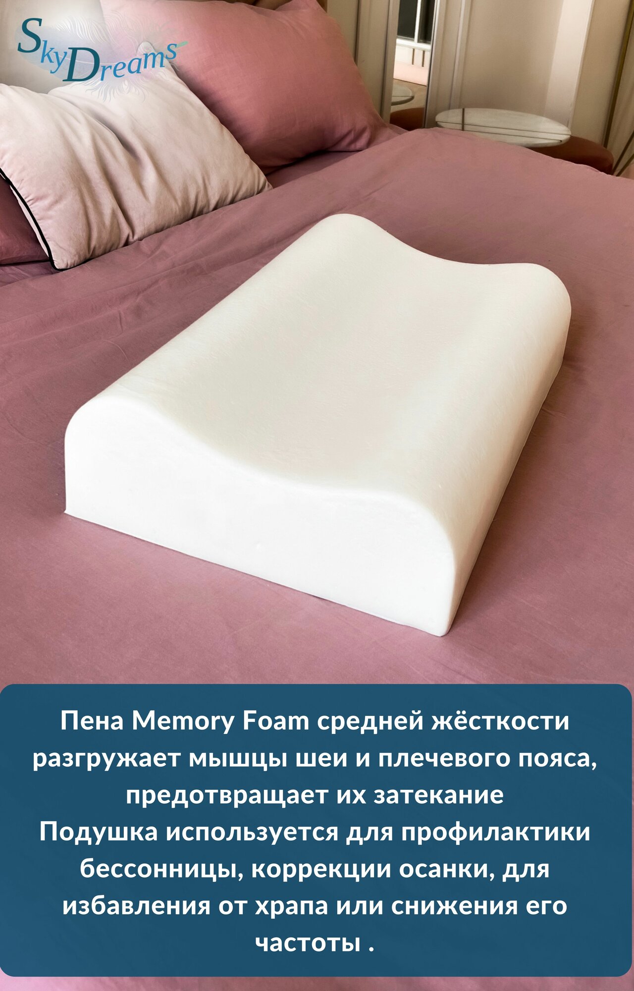 СохранитьSkyDreams Ортопедическая подушка WAVE с эффектом памяти, с двумя валиками, 60х40х15/13 см интересное: