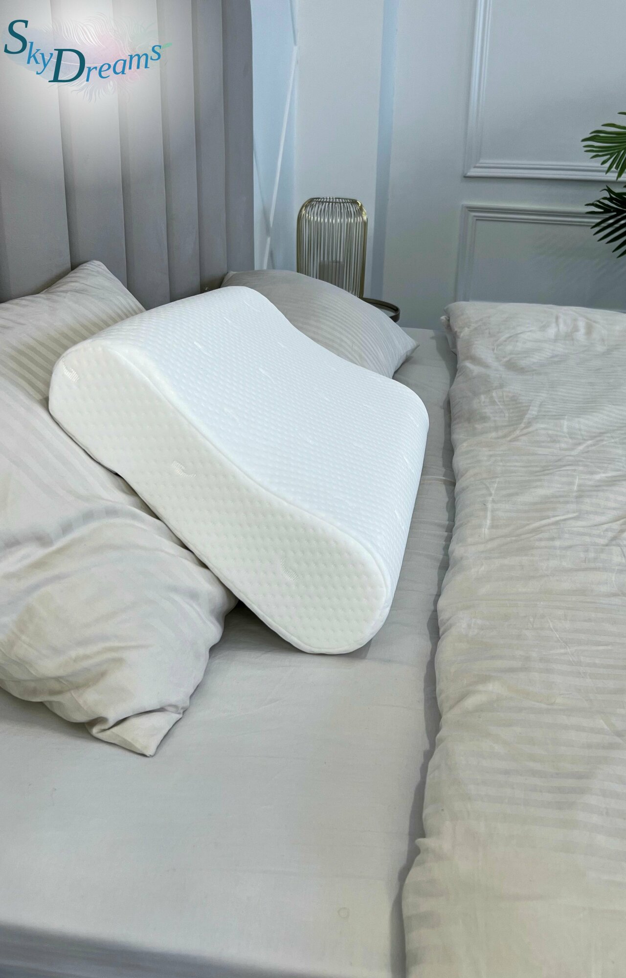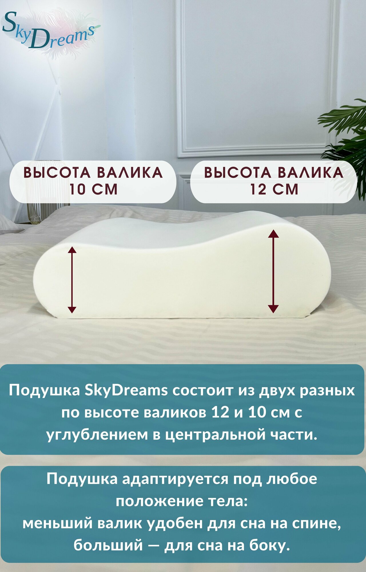 SkyDreams Ортопедическая подушка WAVE с эффектом памяти, с двумя валиками, 60х40х16/18 см