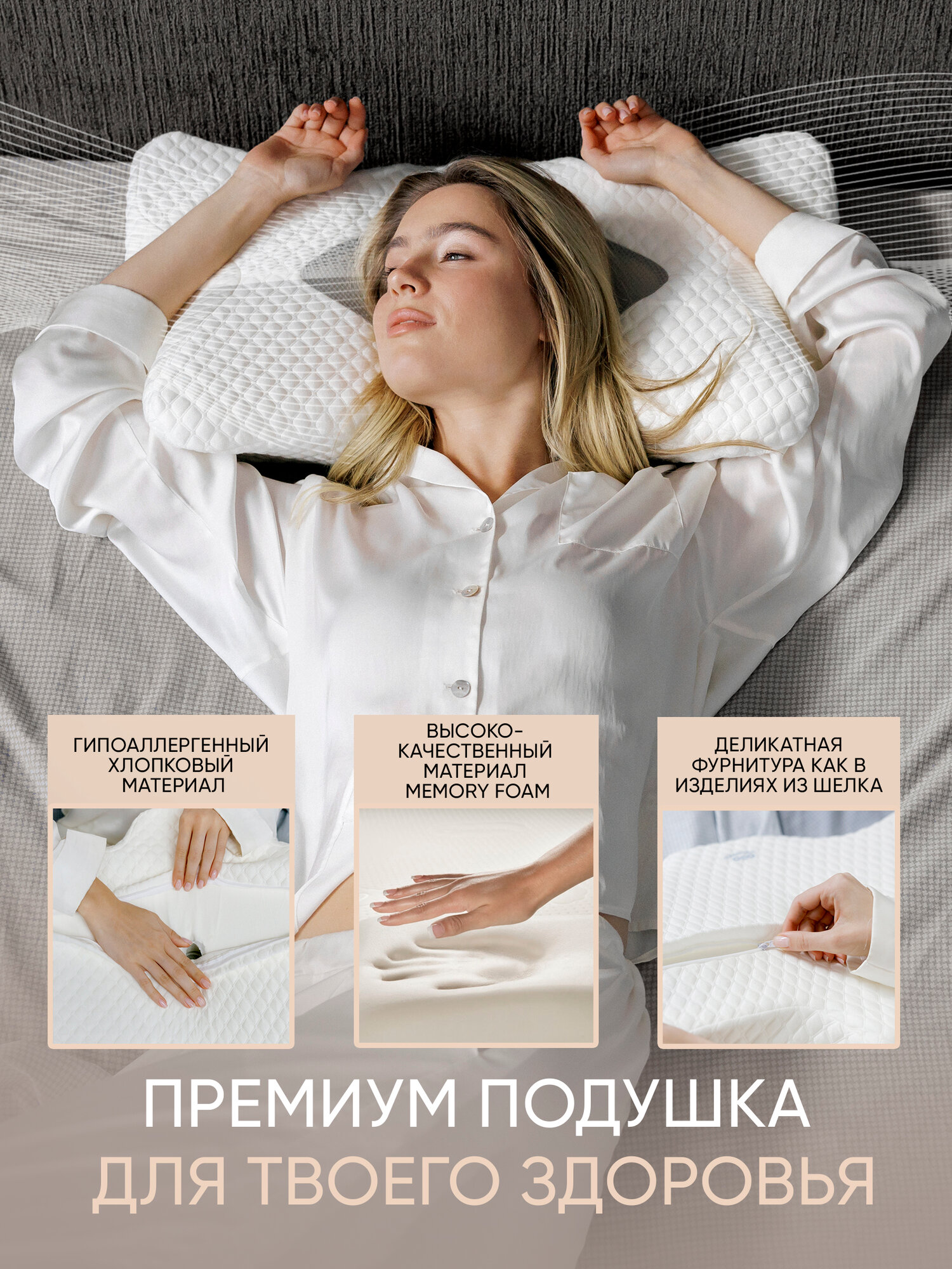 Комплект: Ортопедическая подушка с эффектом памяти для сна, анатомическая + дополнительный сменный чехол интересное: