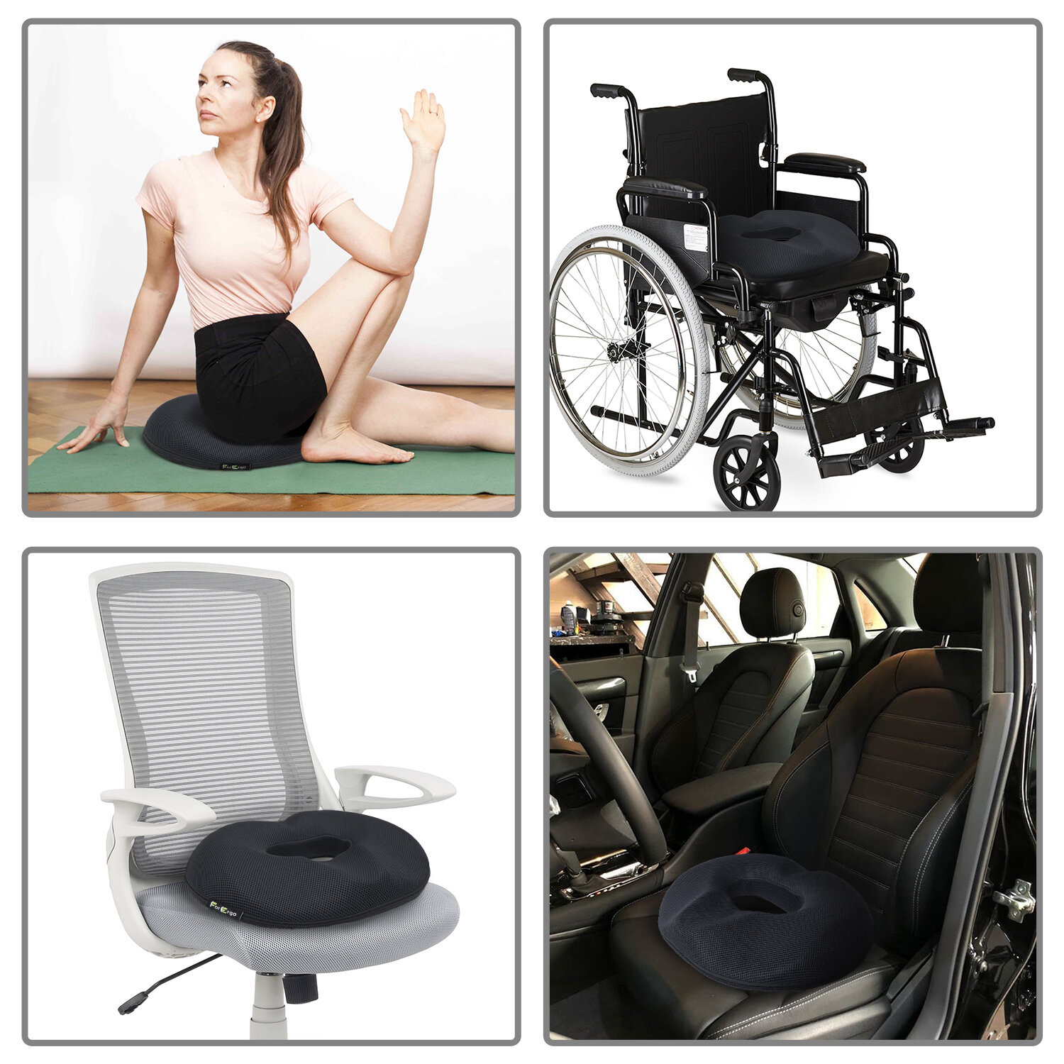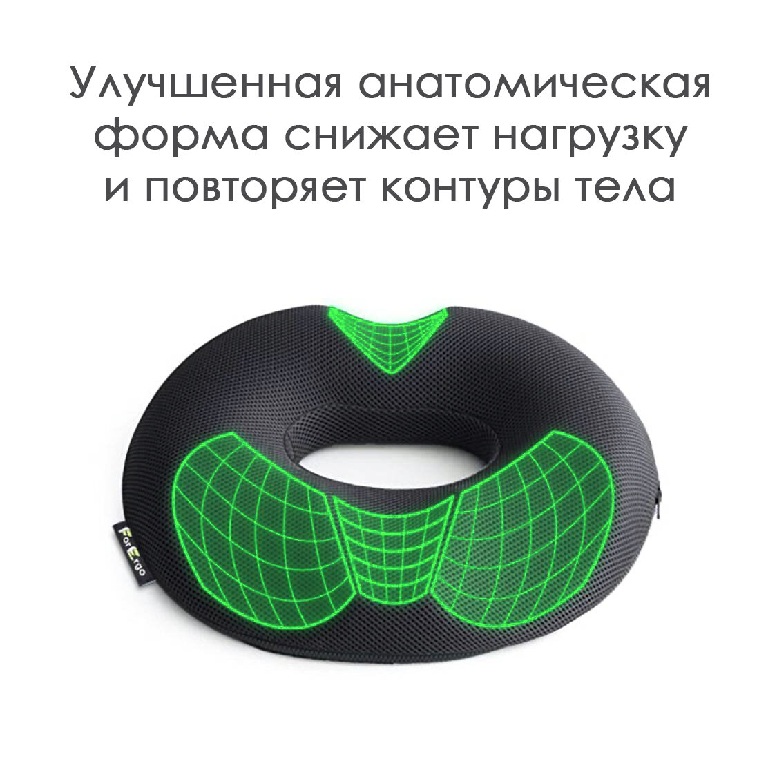 Купить Подушка с отверстием "Пончик" черная с эффектом памяти, для осанки на стул кресло в машину