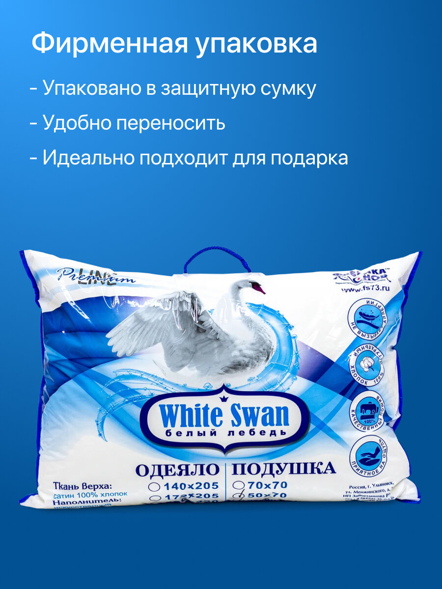 Подушка "Белый лебедь", 50 х 70 см, хлопок страйп сатин, белый интересное:
