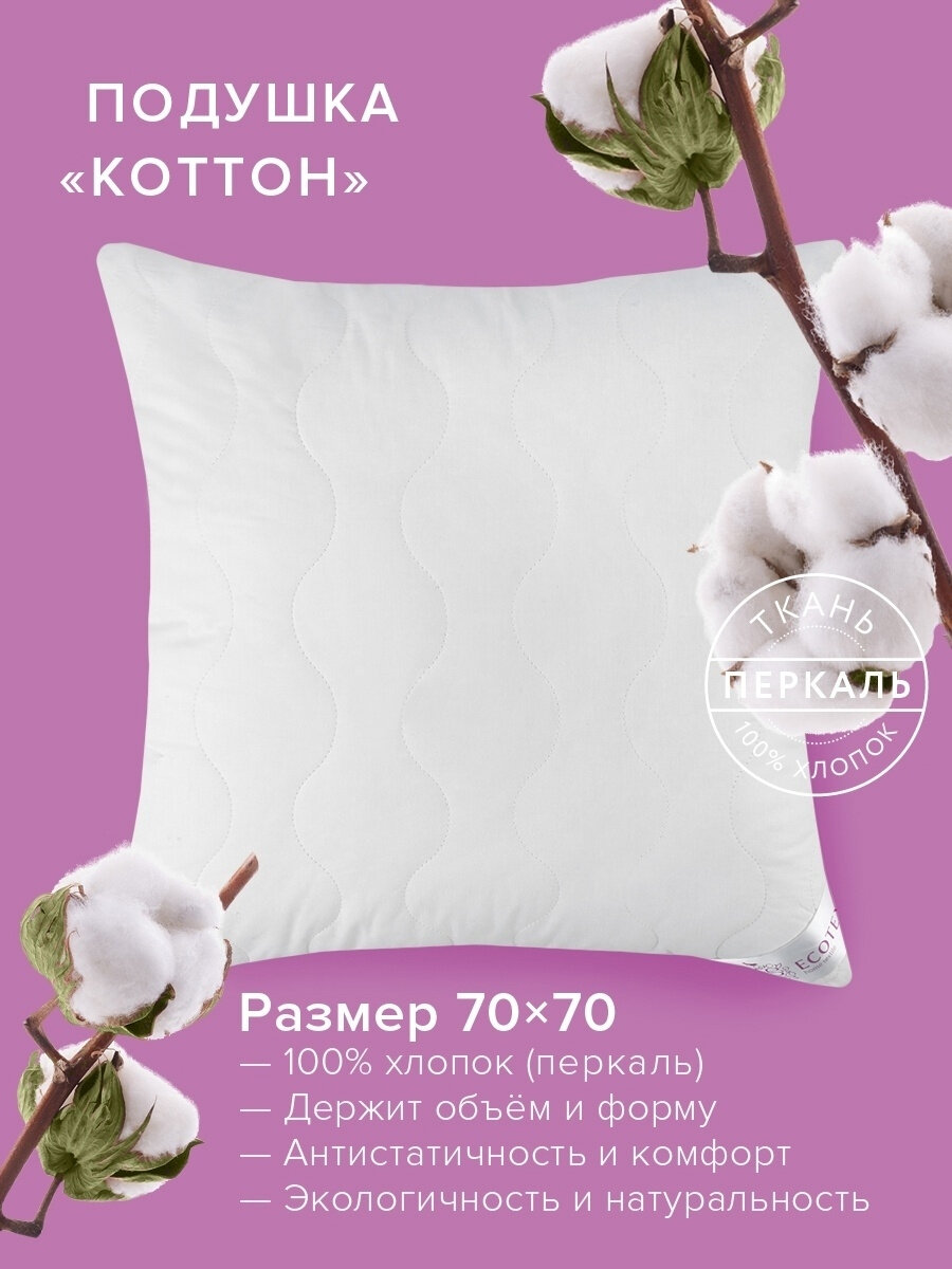Подушка 70х70 хлопок Ecotex интересное: