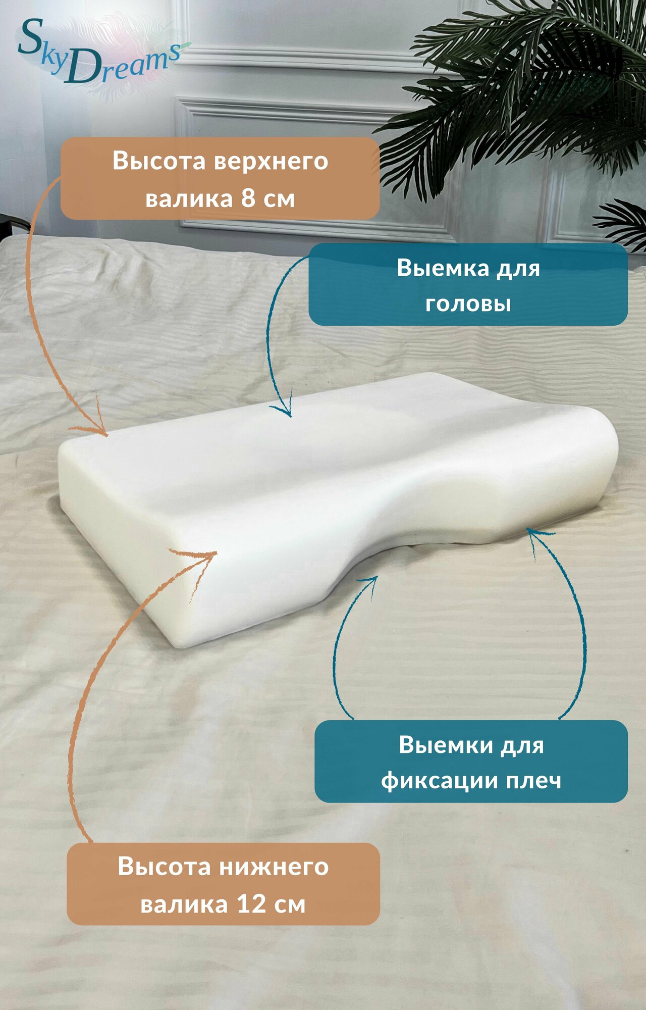 SkyDreams Ортопедическая подушка с поддержкой шеи и плеч, с эффектом памяти, 58х33х10,5/6,5 см, п/э
