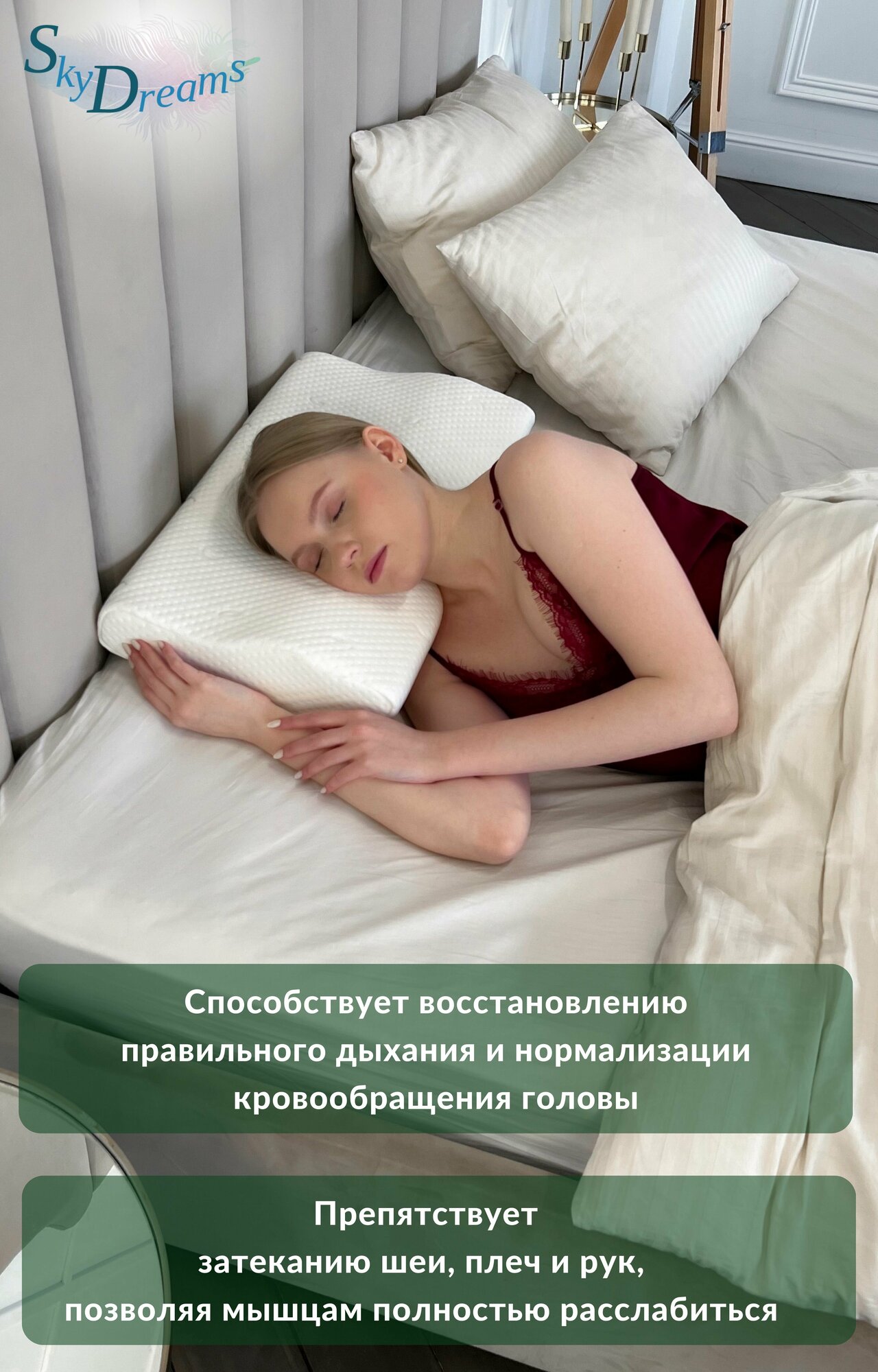 SkyDreams Ортопедическая подушка с поддержкой шеи и плеч, с эффектом памяти, высота 10,5/6,5 см