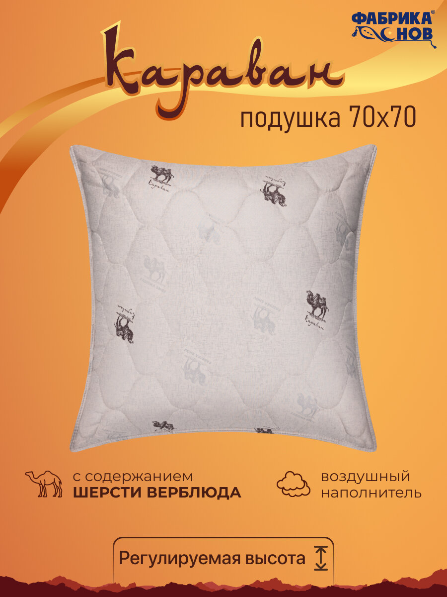 Подушка "Караван", 70 х 70 см, верблюжья шерсть, стеганая интересное: