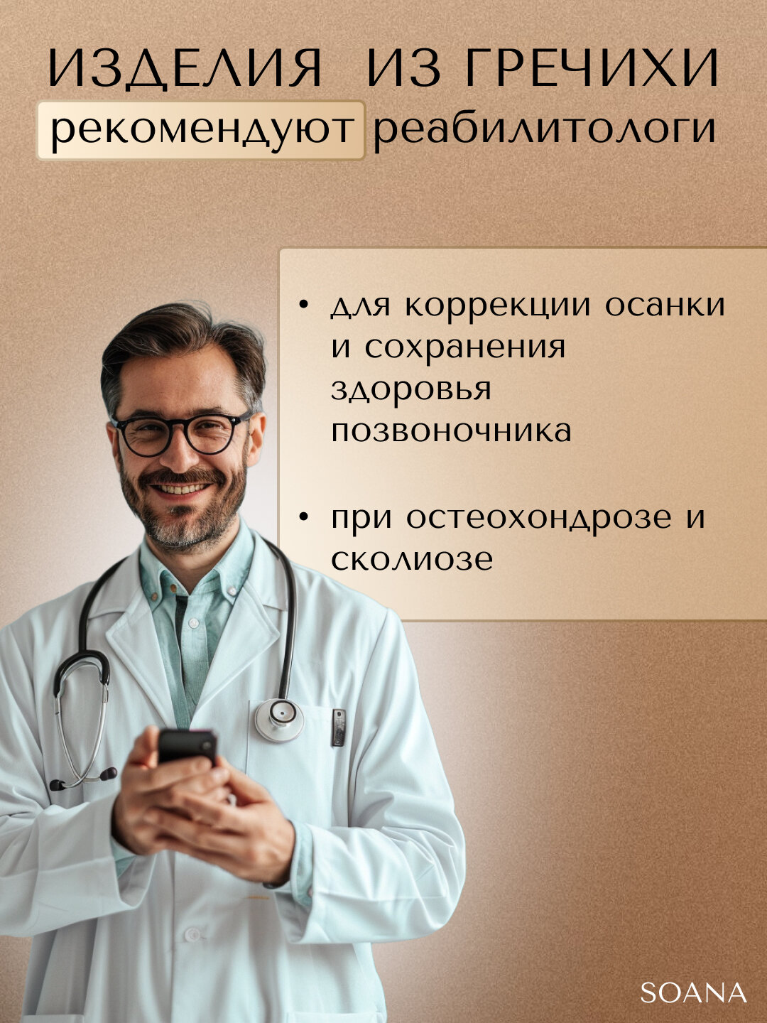Подушка SOANA, лузга гречихи, 40x60 см, ортопедическая, гипоаллергенная интересное: