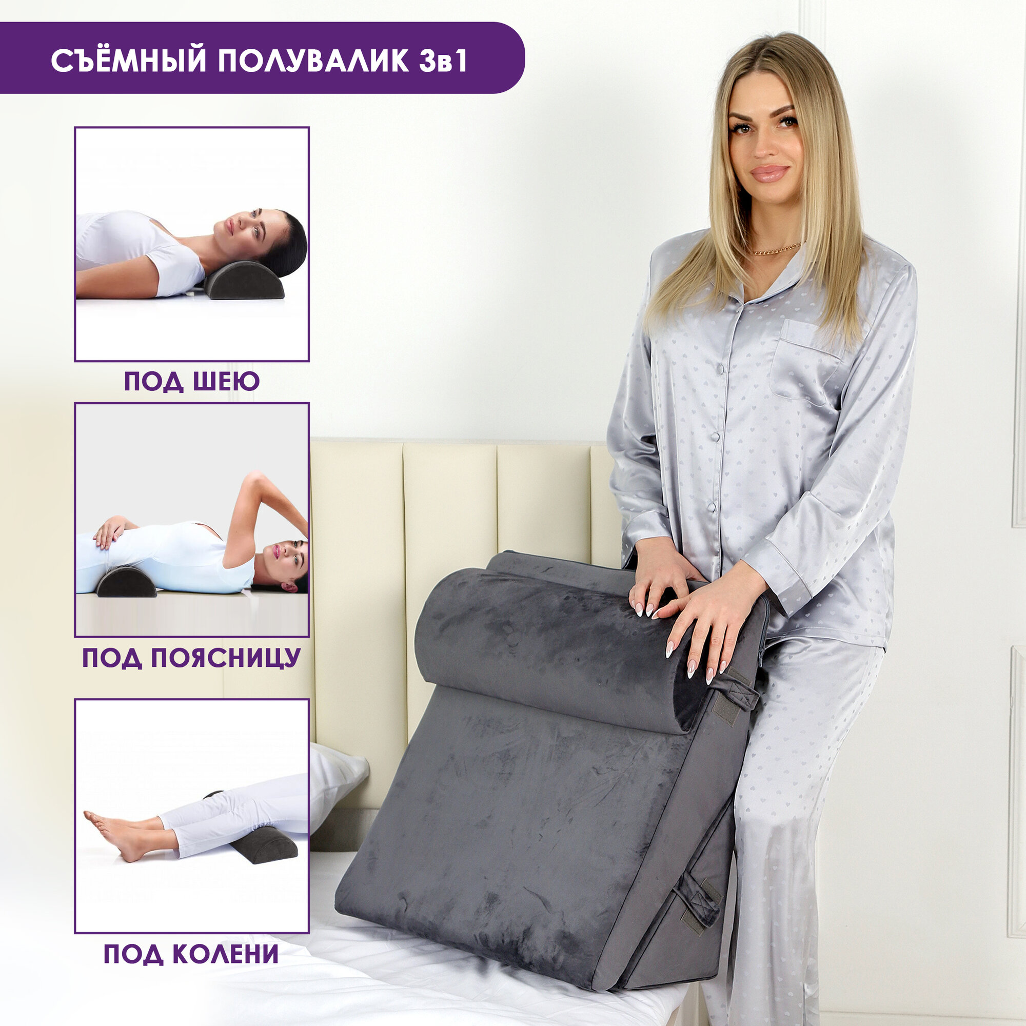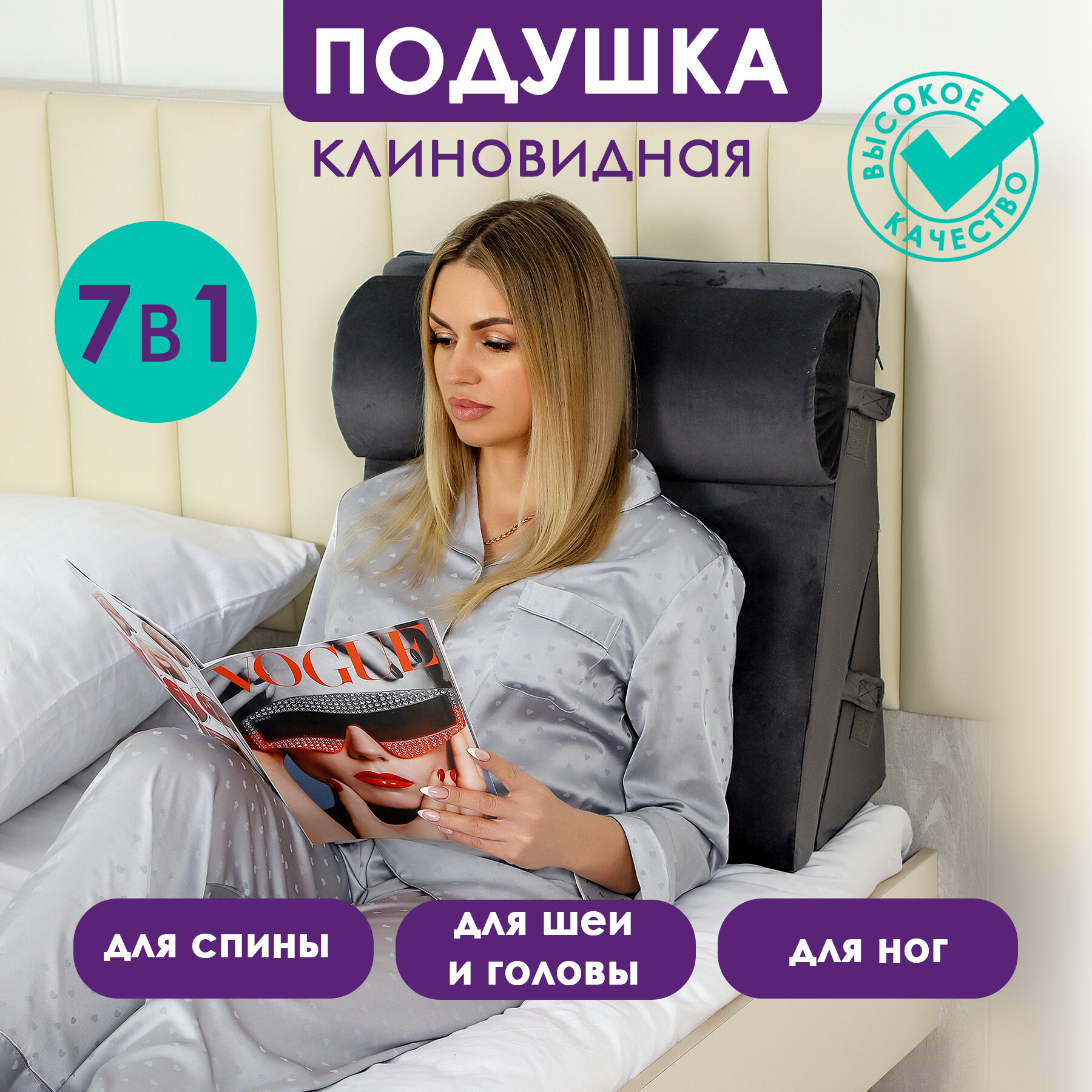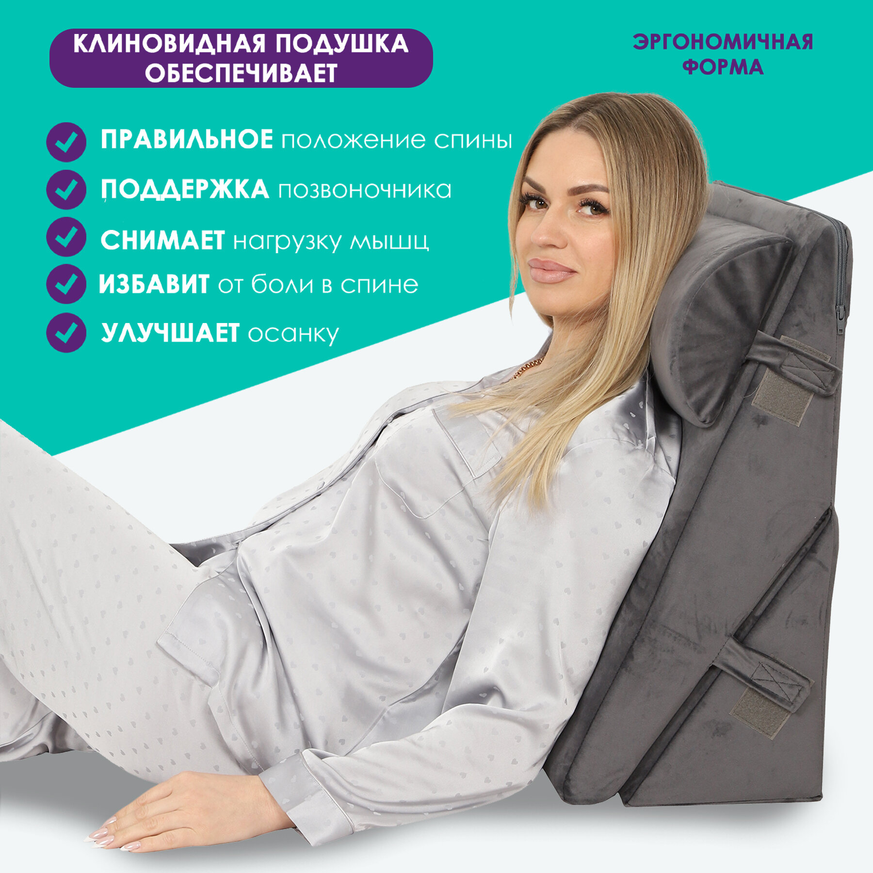 Клиновидная подушка, с валиком Bio-Line, ортопедическая , для чтения, изголовья, при ГЭРБ, подушка кресло, сер интересное: