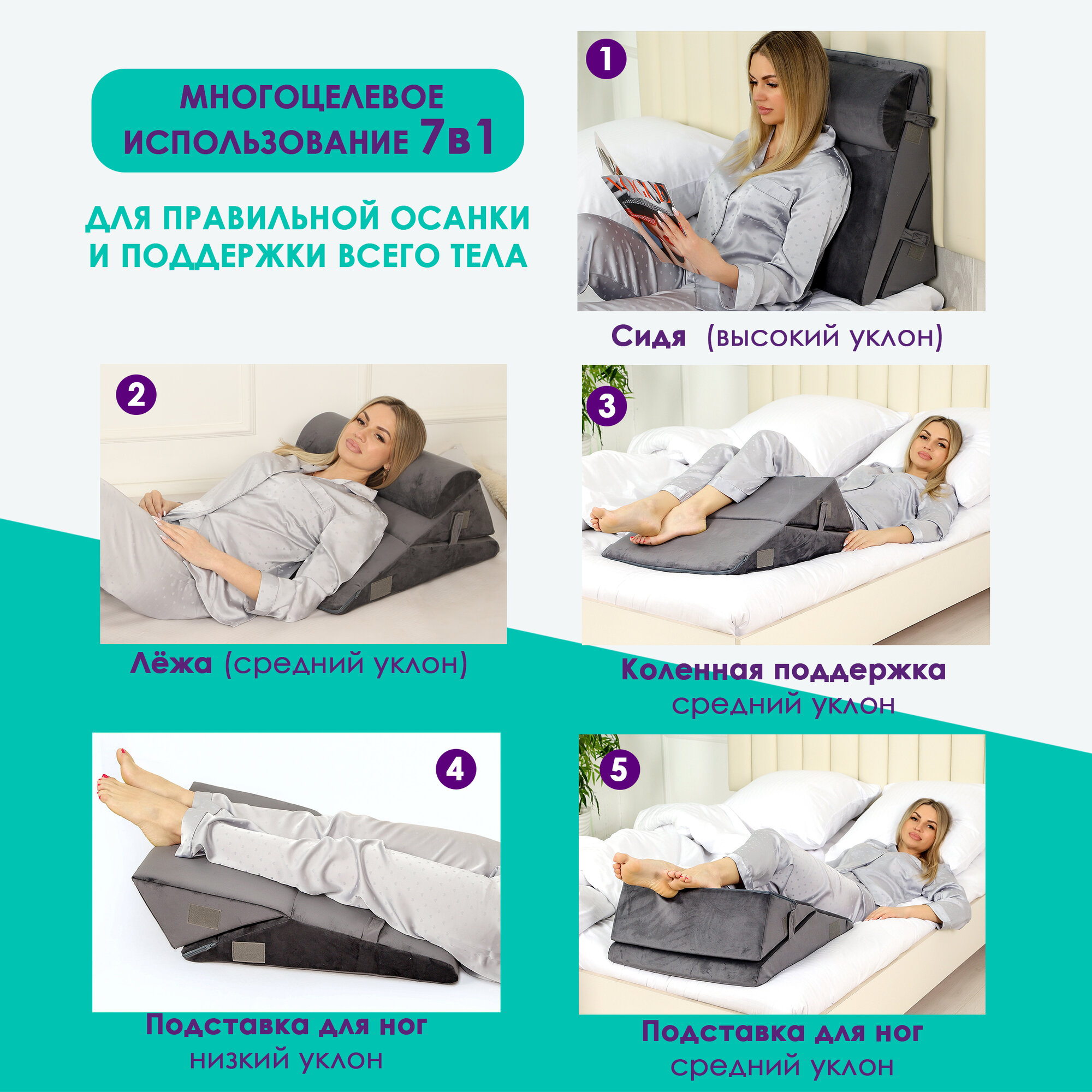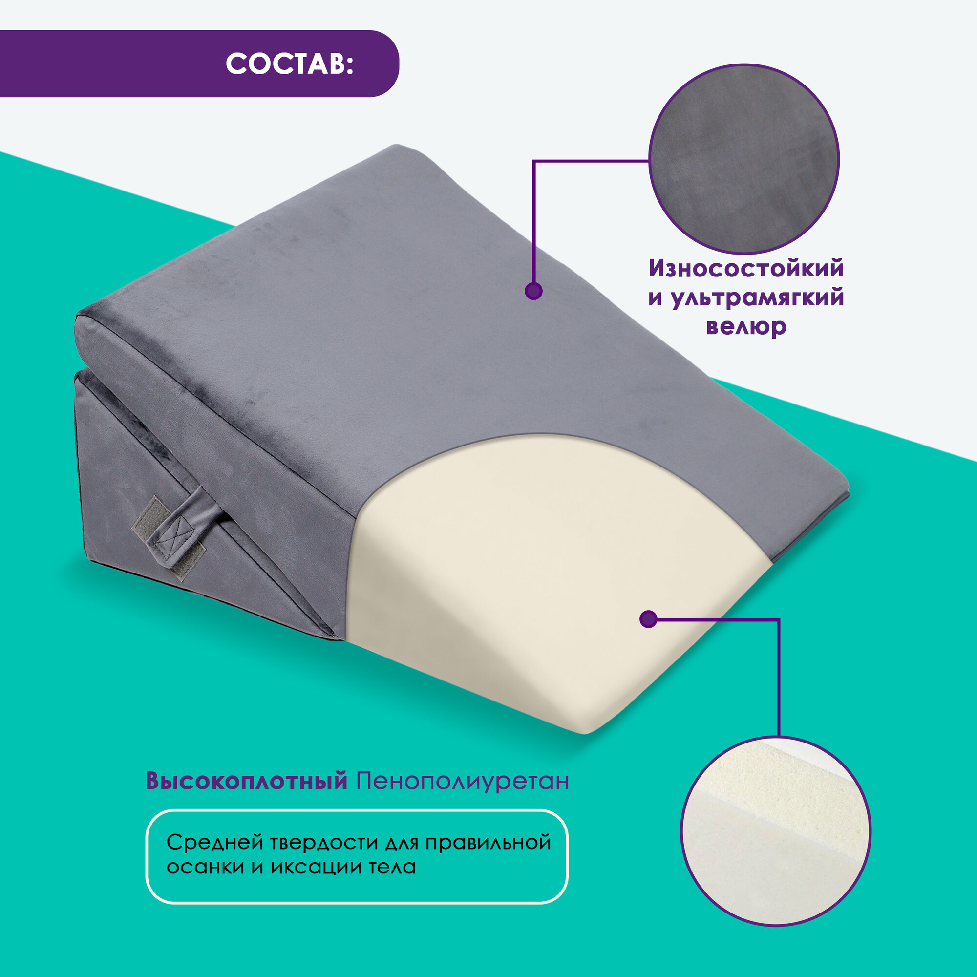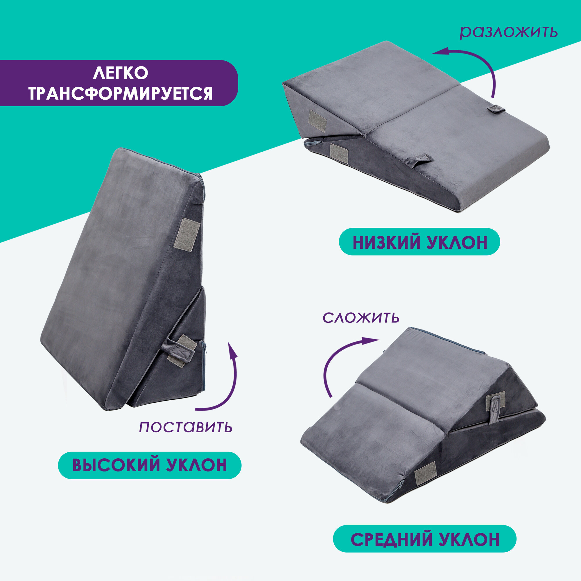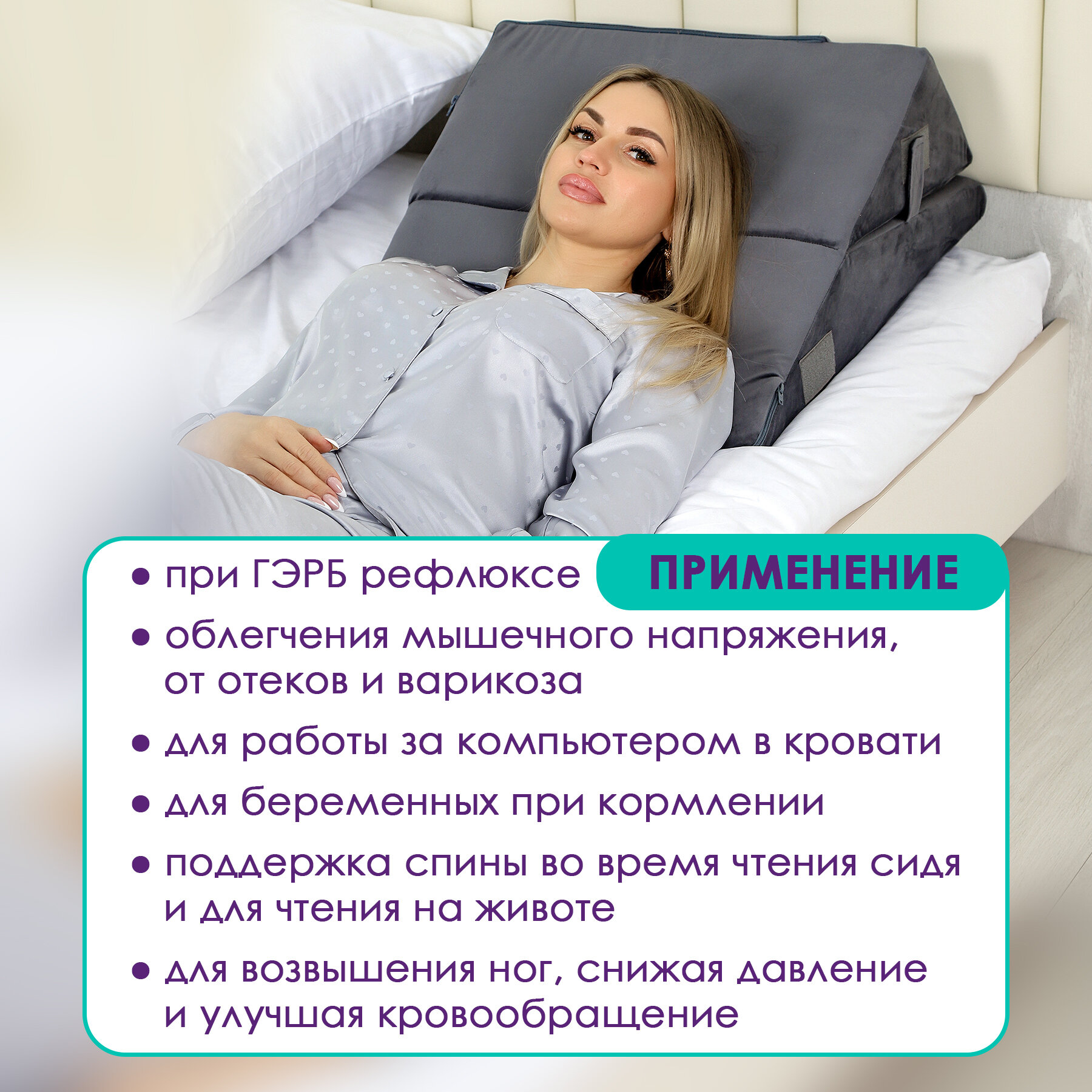 Клиновидная подушка, с валиком Bio-Line, ортопедическая , для чтения, изголовья, при ГЭРБ, подушка кресло, сер интересное: