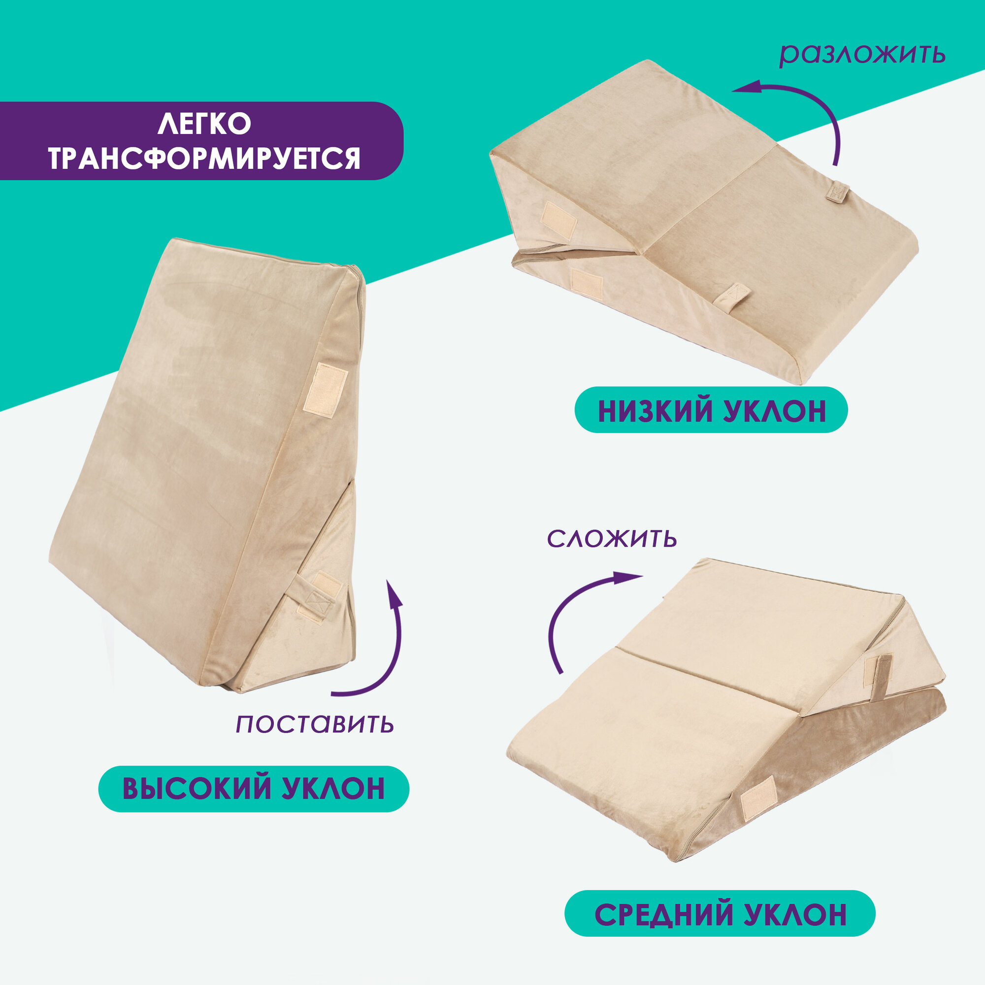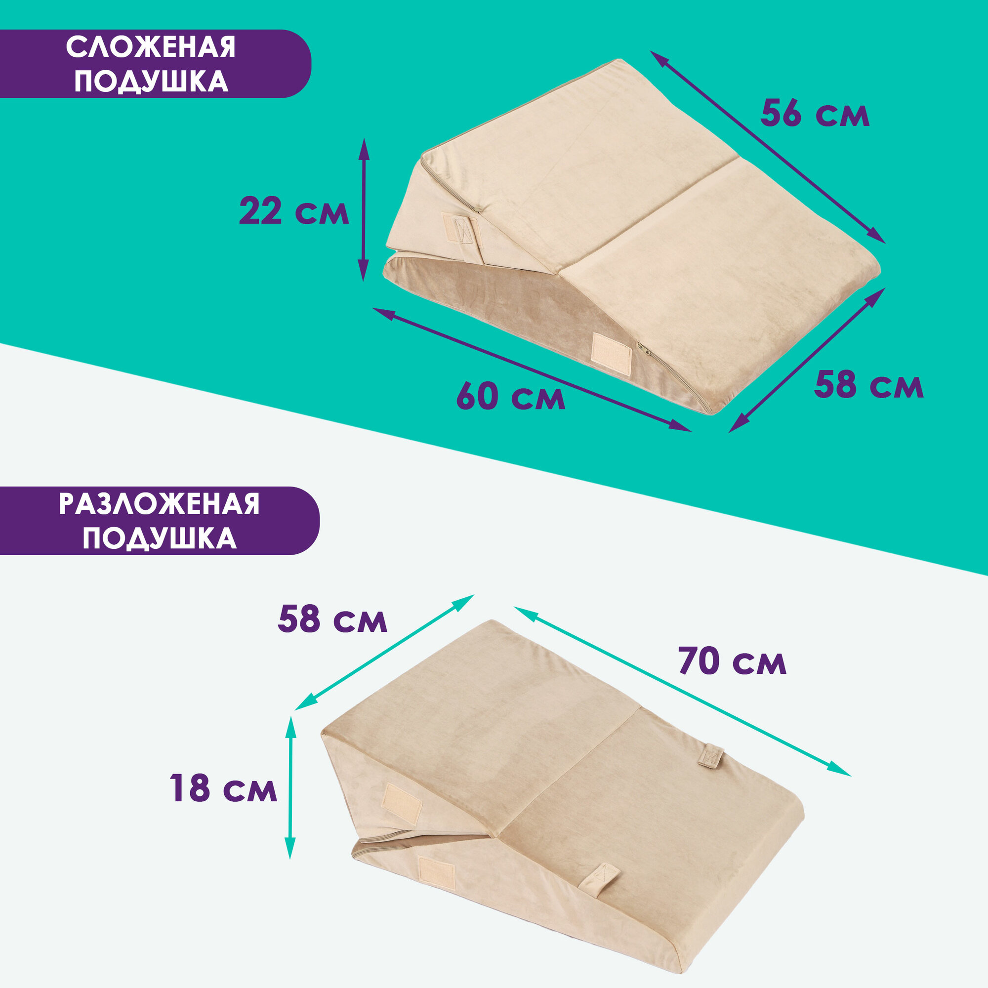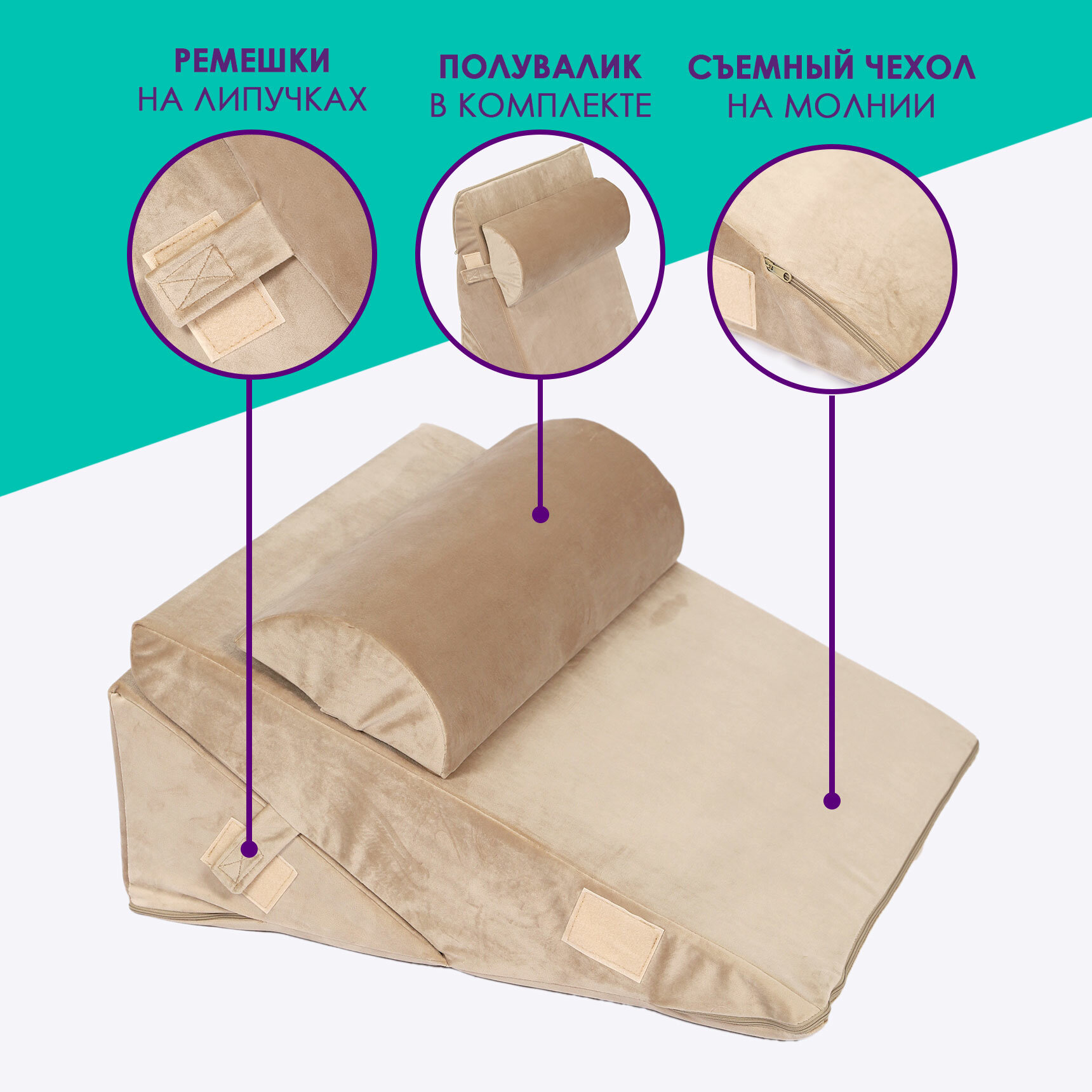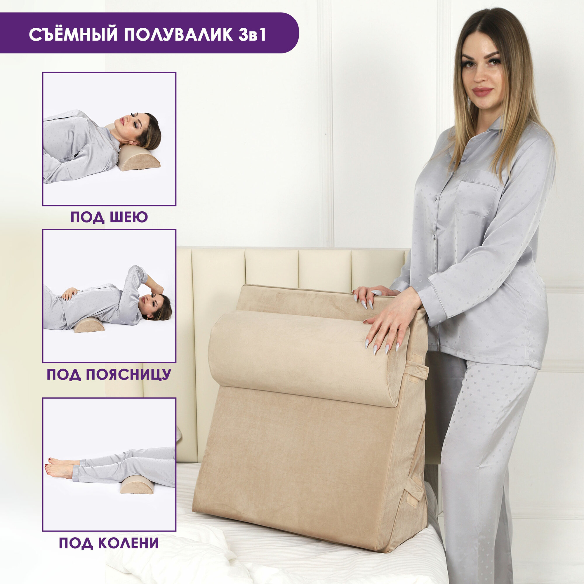 Клиновидная подушка с валиком Bio-Line, ортопедическая, для чтения, для изголовья, при ГЭРБ, для лежачих больных, беж интересное: