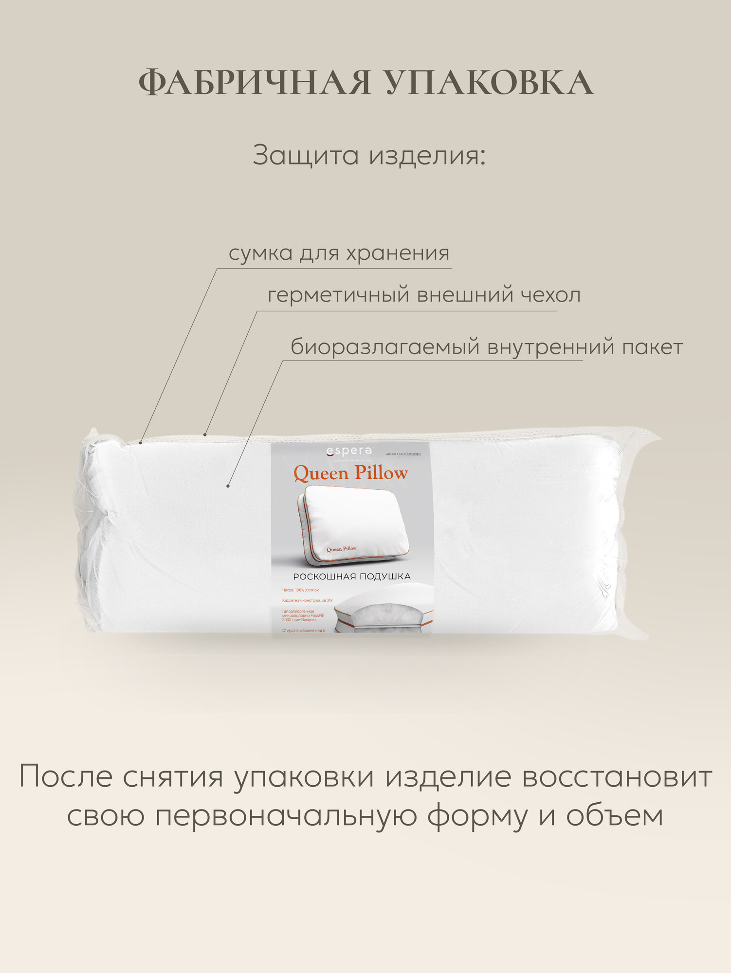 Подушка ESPERA "Queen Pillow" Alaska Red Label, под стандарт наволочки 70х70 см, чехол 100% хлопок, цвет белый интересное: