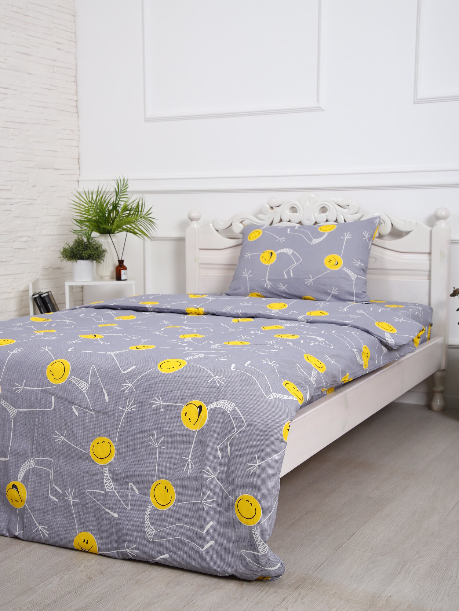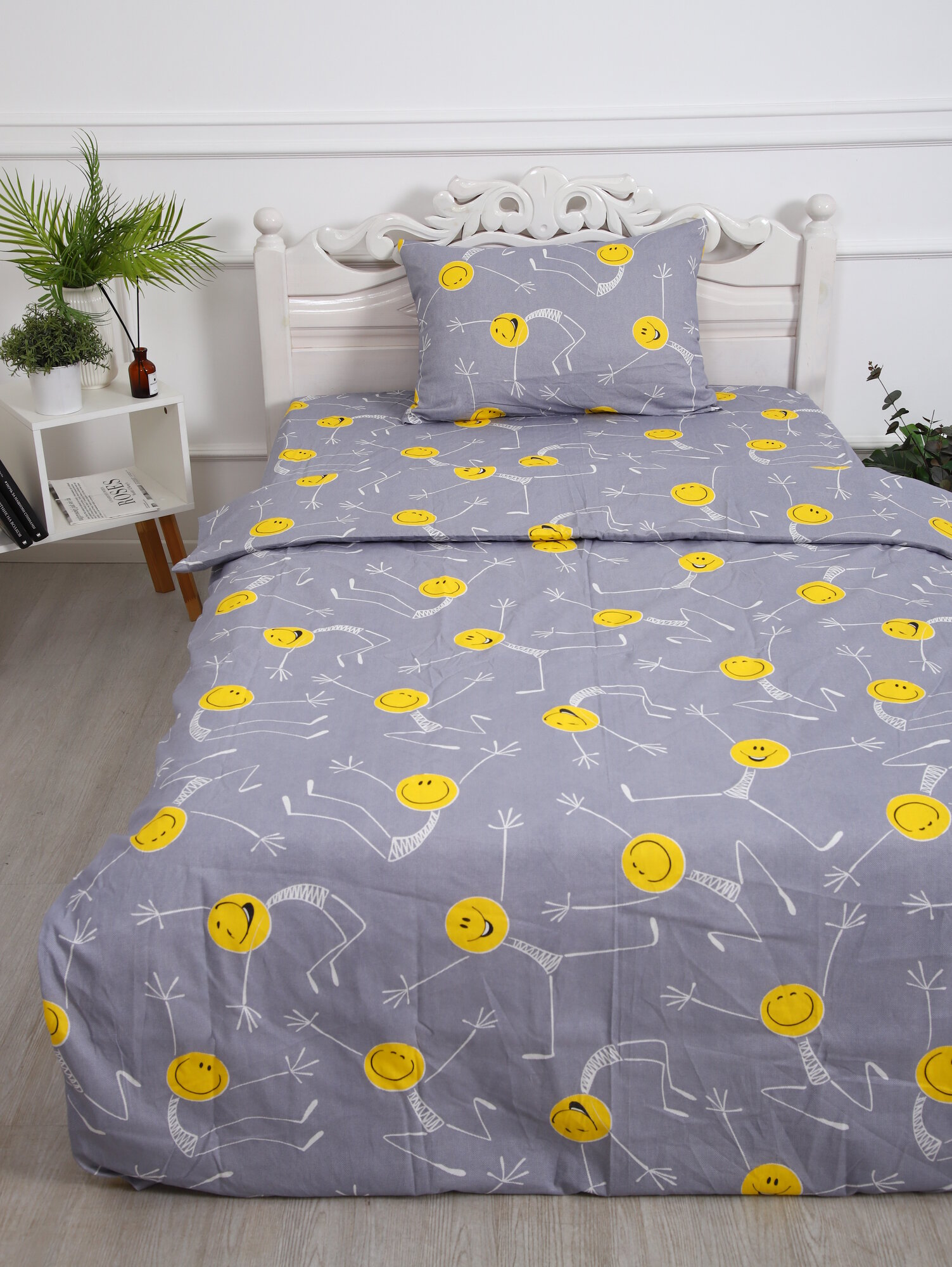 Купить Постельное белье Текстиль Отель "Смайлы", 1,5 спальное, бязь, хлопок, комплект 3 предмета