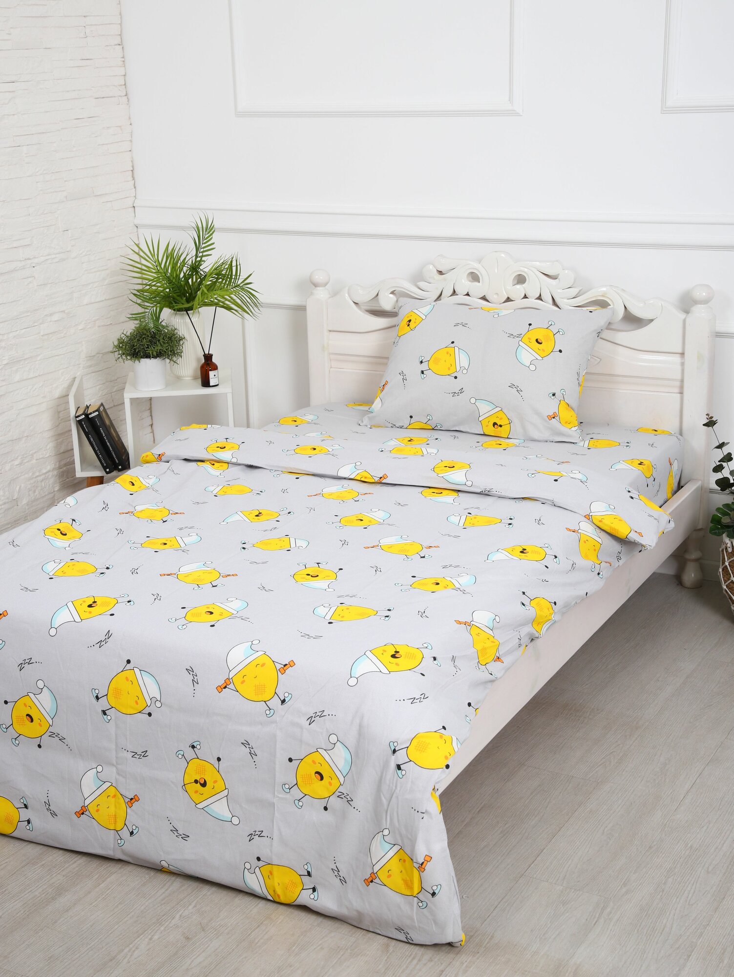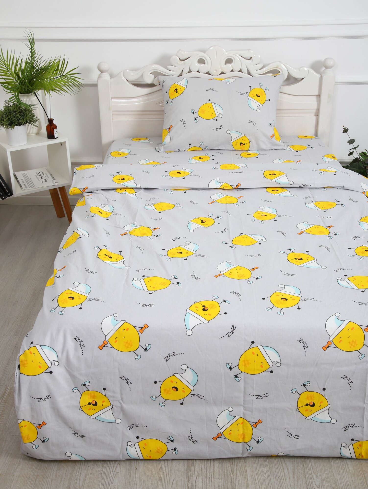 Постельное белье Текстиль Отель "Смайлы", 1,5 спальное, бязь, хлопок, комплект 3 предмета