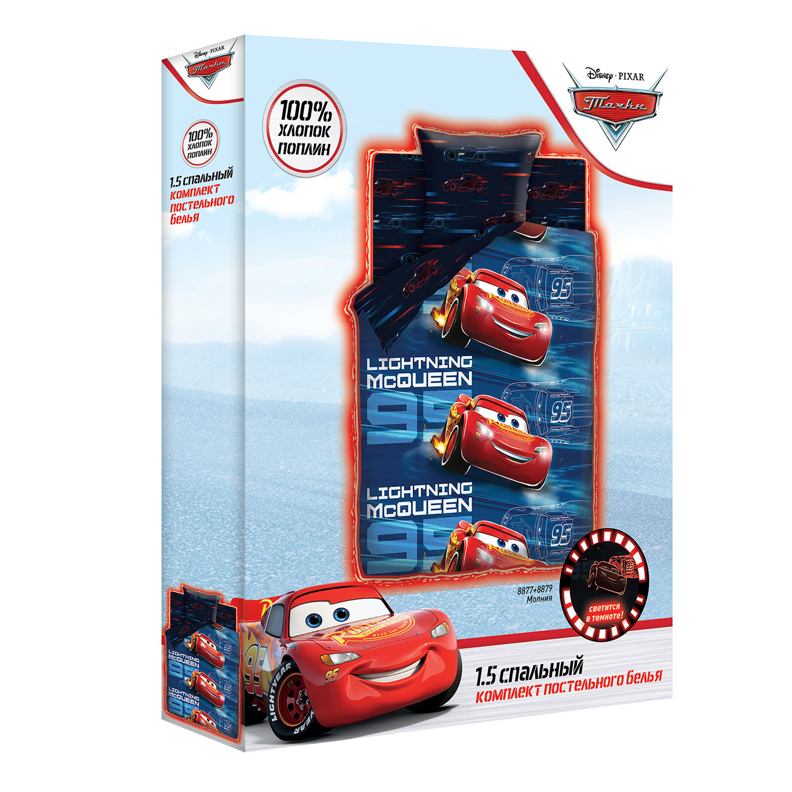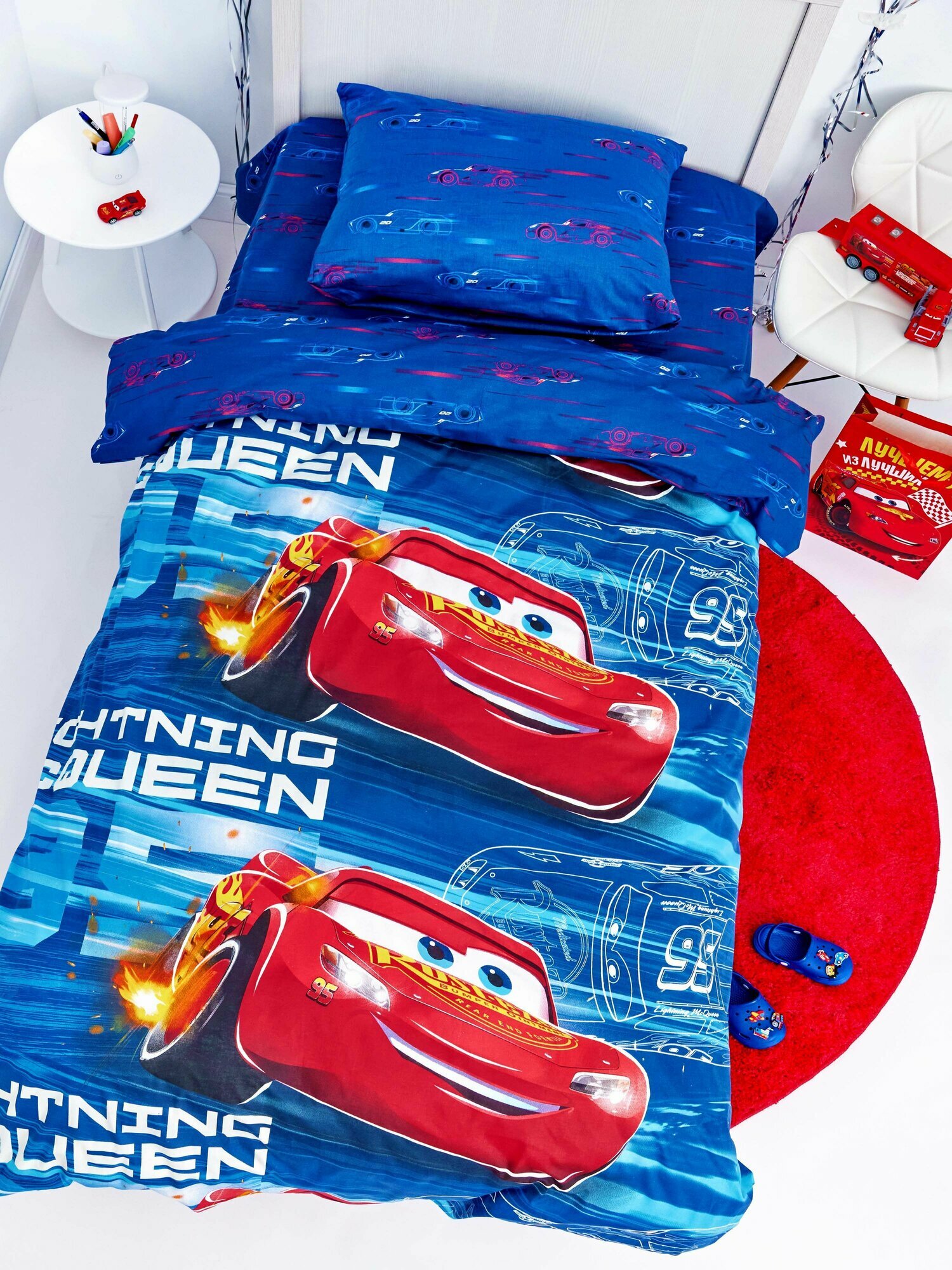 Непоседа, Комплект детского постельного белья 1 5 спальный, Поплин, 1 нав. 70х70, Тачки молния маккуин