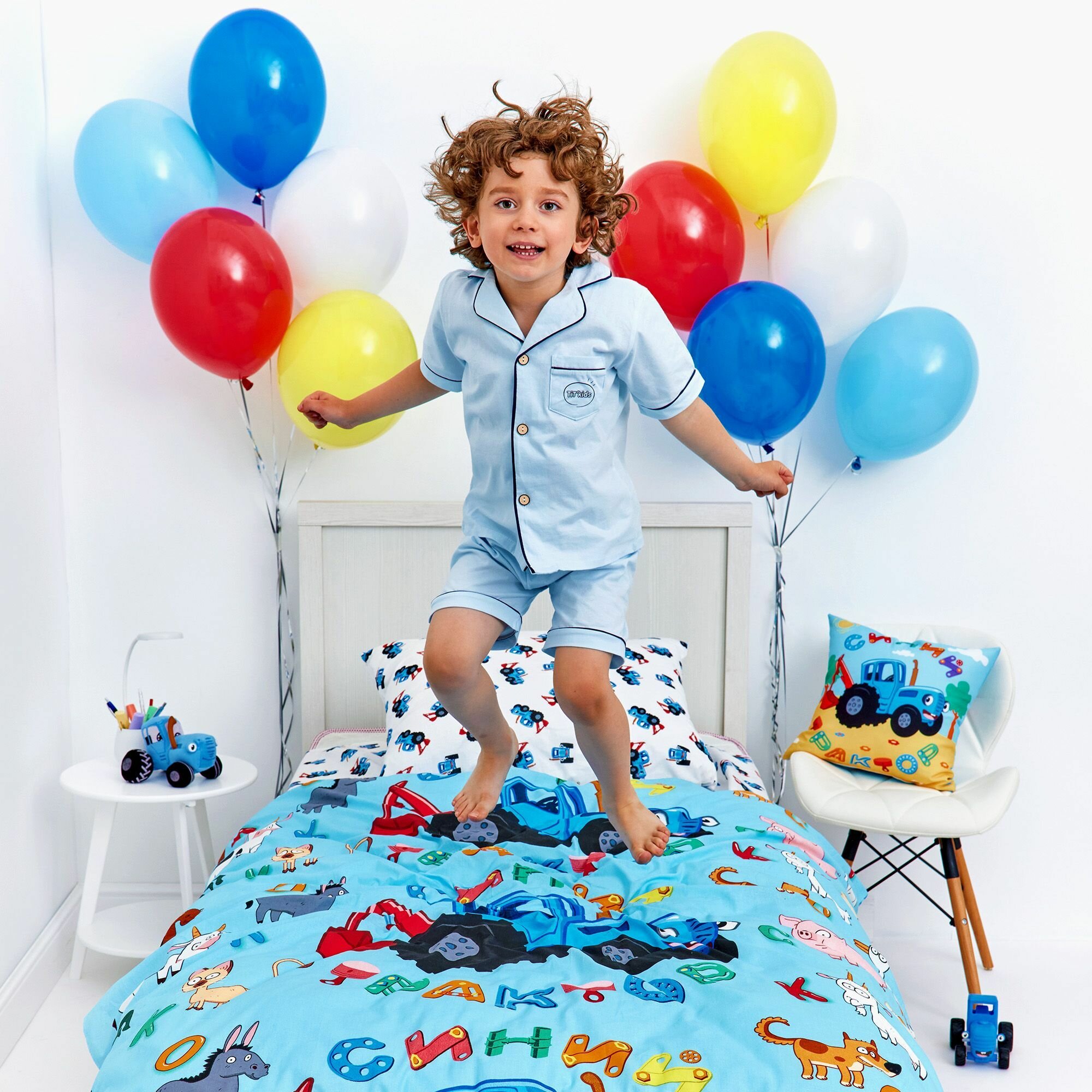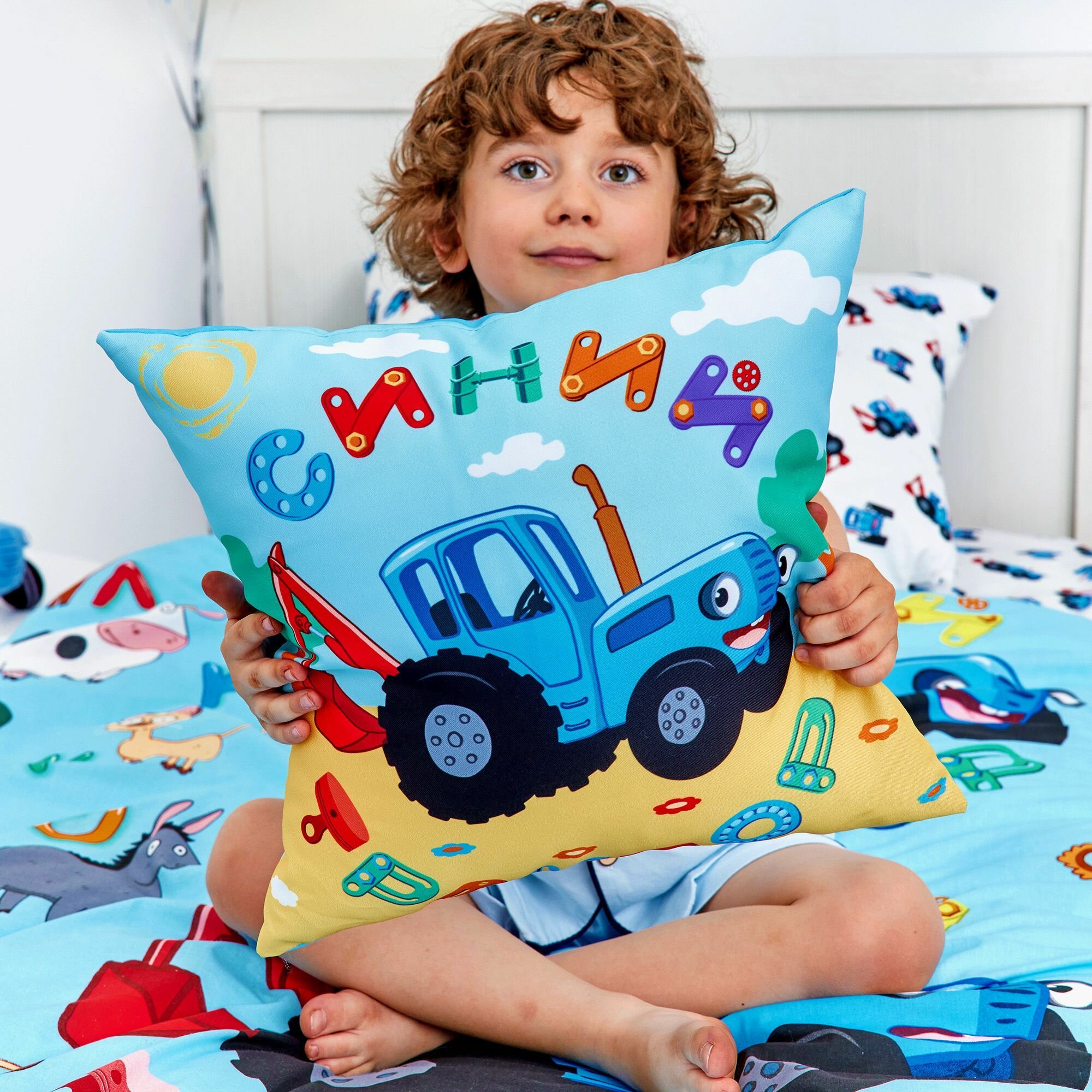 Купить Непоседа, Комплект детского постельного белья 1 5 спальный, Поплин, 1 нав. 70х70, Синий трактор