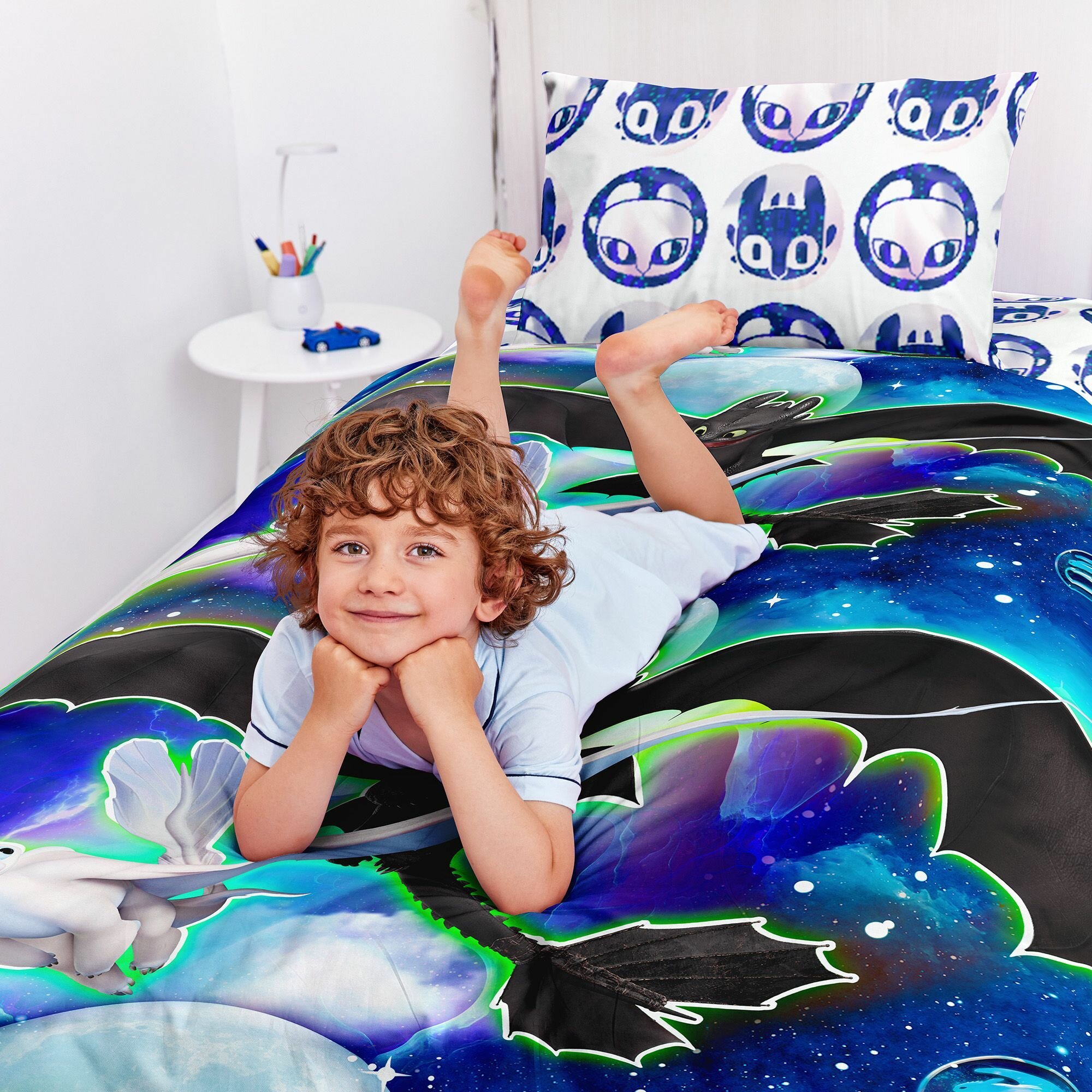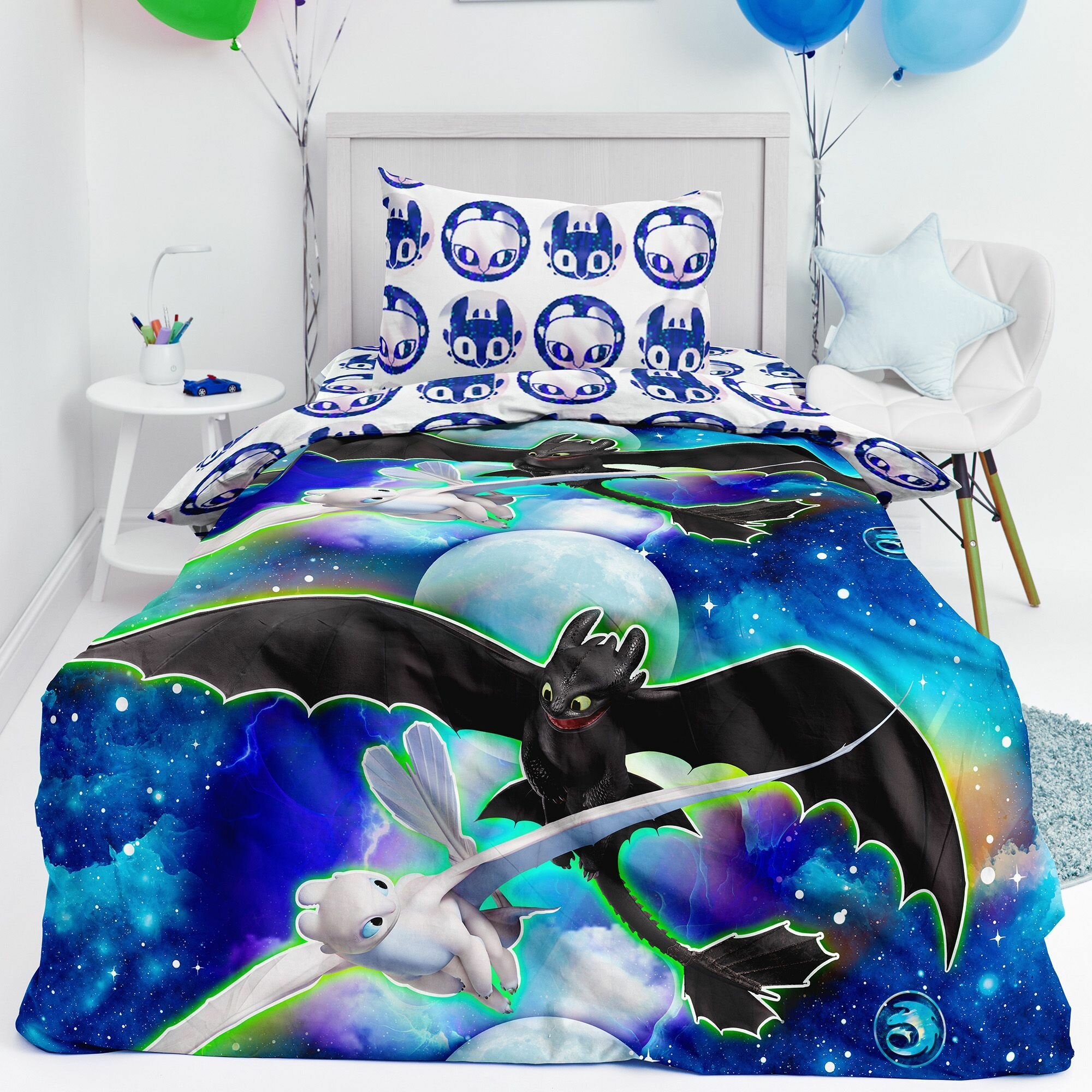 СохранитьНепоседа, Комплект детского постельного белья 1 5 спальный, Поплин, неон/NEON, 1 нав. 70х70, Драконы / как приручить дракона интересное: