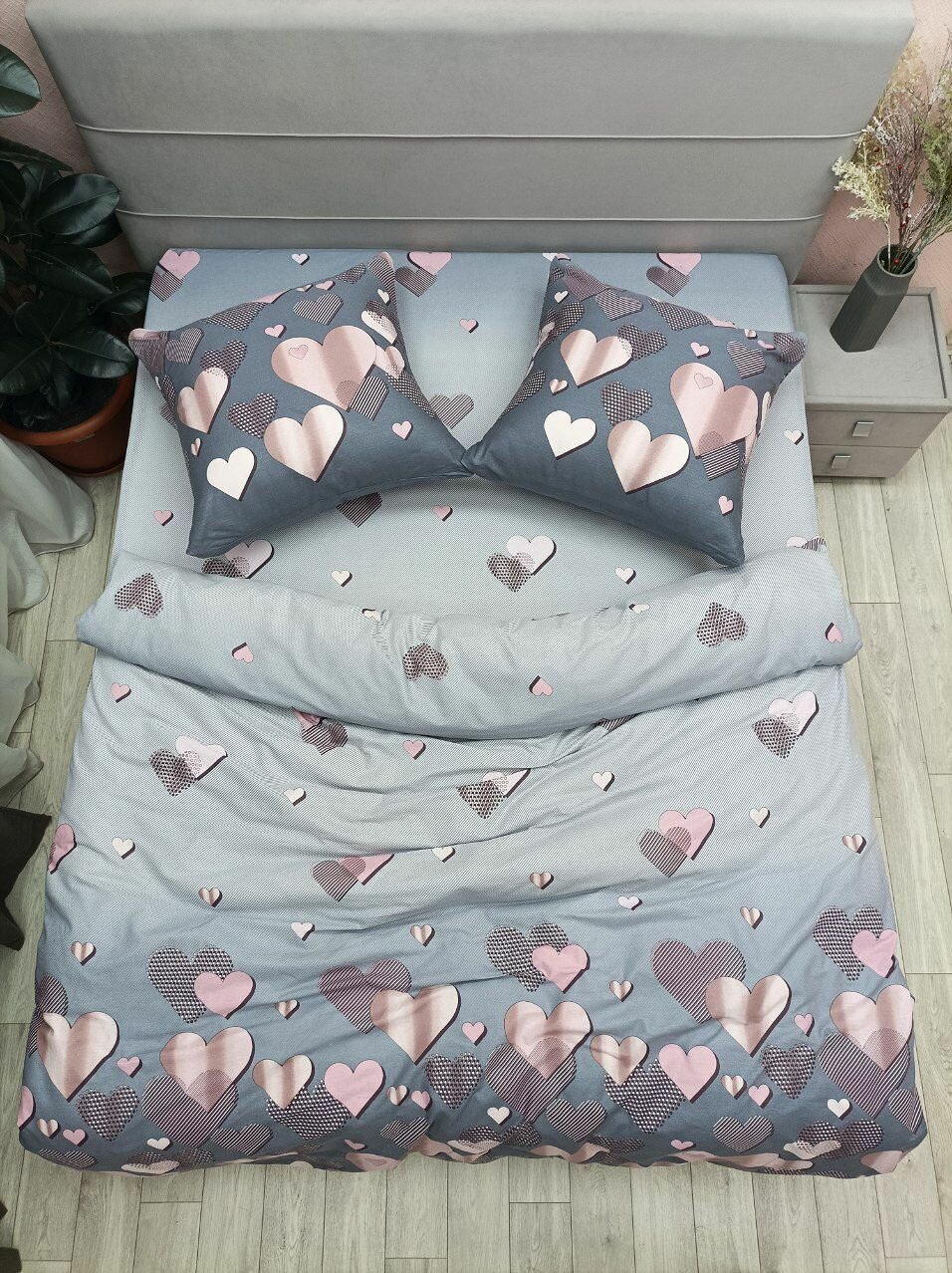 Постельное бельё Kerimov Group, бязь, евро, хлопок 100%, цвет серый/розовый