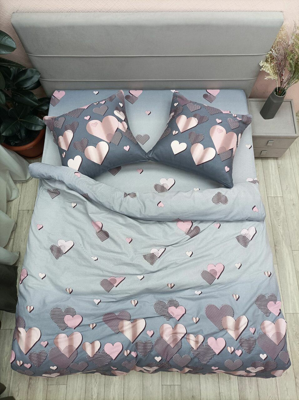 Постельное белье Kerimov GROUP, 1,5-спальное, хлопок 100%, с молнией, бязь, цвет серый/розовый