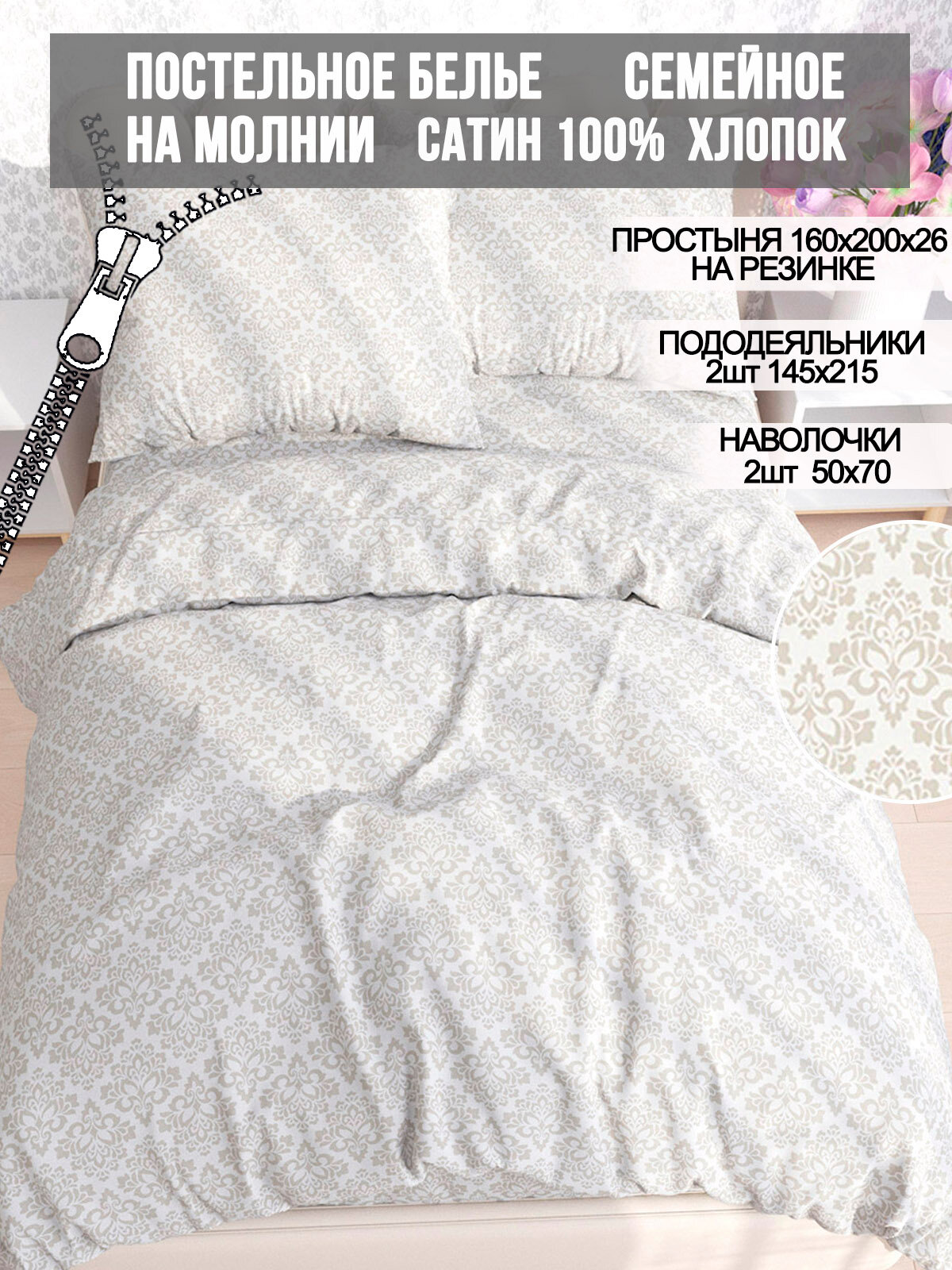 СохранитьПостельное белье Milky Garden "Classic" семейное, пододеяльники 2шт, наволочки 2шт, простынь на резинке, сатин интересное: