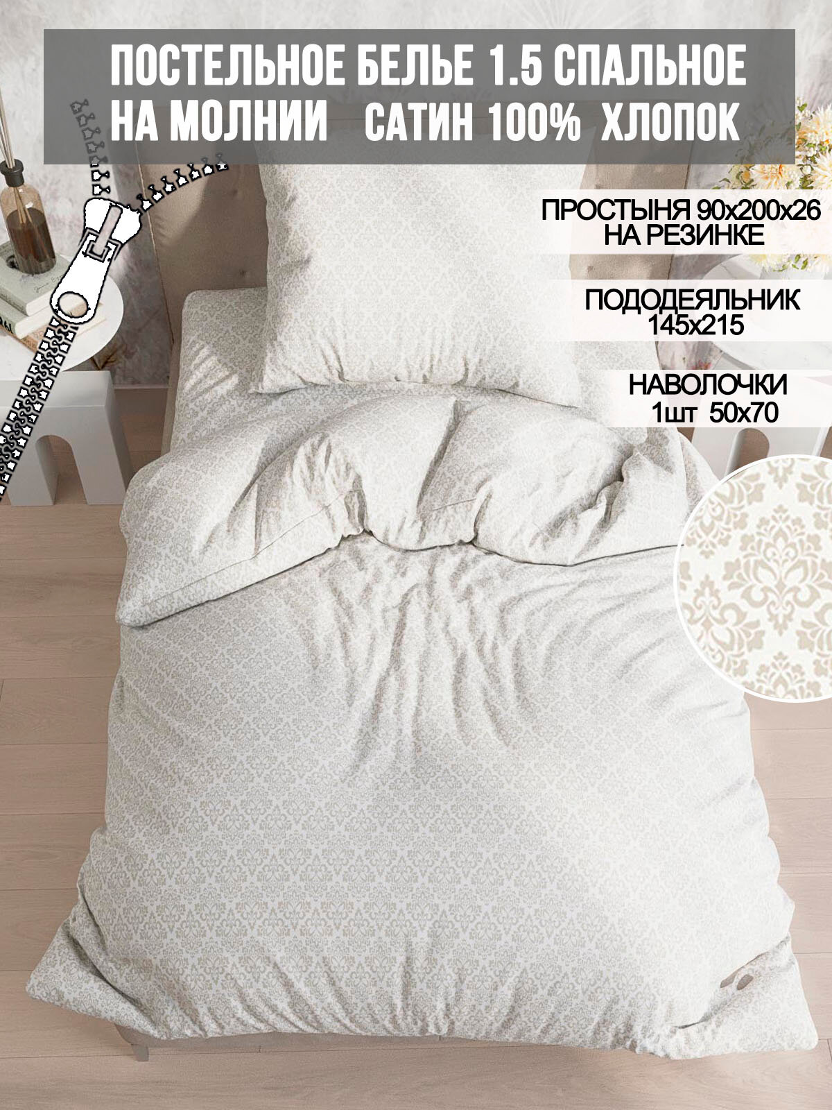 Купить Постельное бельё Milky Garden "Classic" 1,5-сп, сатин, хлопок 100%, наволочка 1шт, простынь на резинке