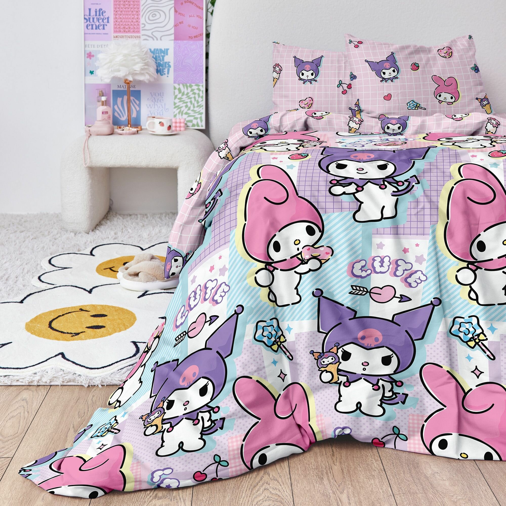 Купить Постельное белье 1.5 спальное Crazy Getup, Поплин, нав. 50х70, Мелоди и Куроми (Gothic Kuromi)