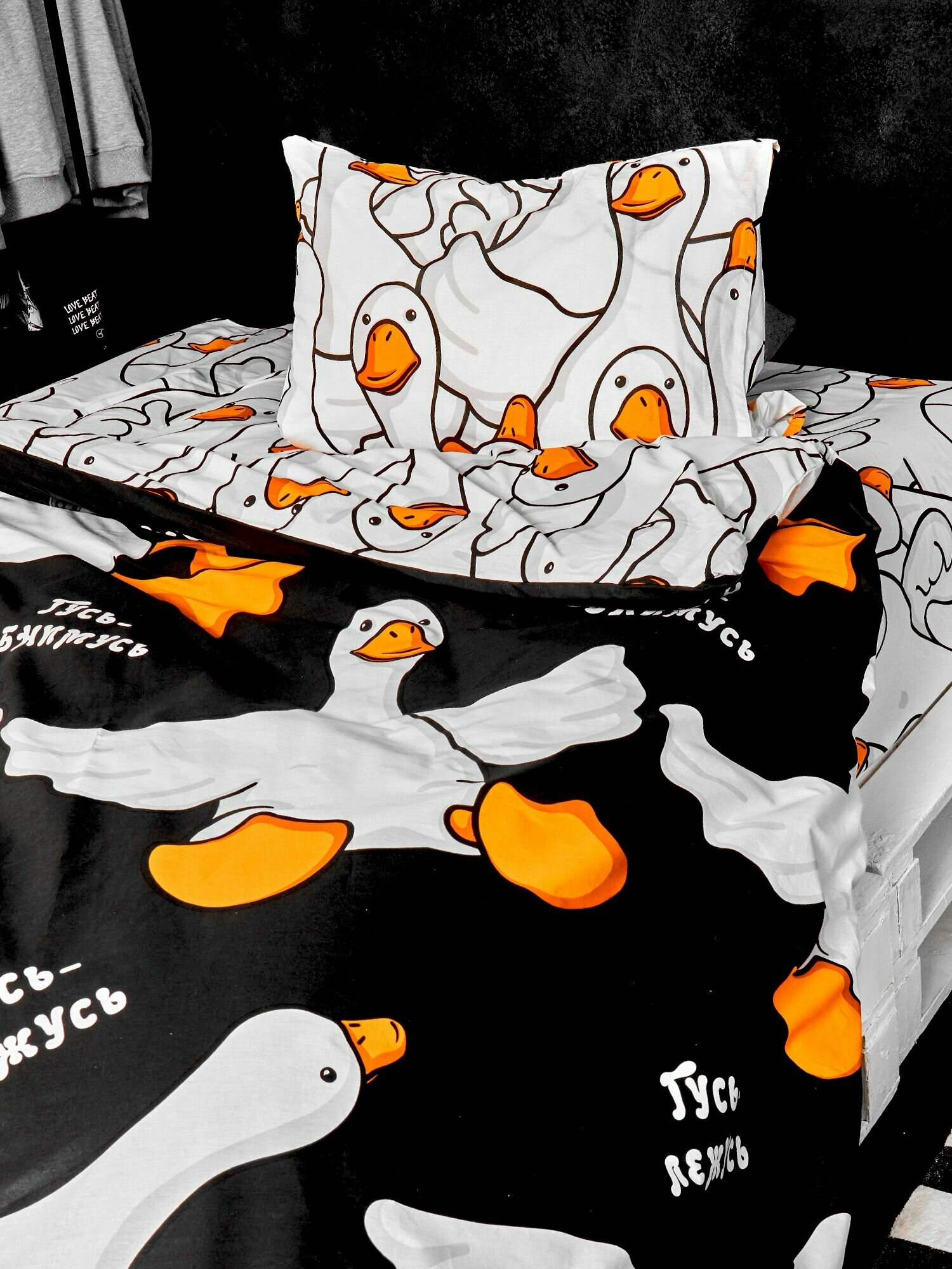 Crazy Getup, Комплект постельного белья 1 5 спальный, Поплин, 1 нав. 70х70, Гуси гуси