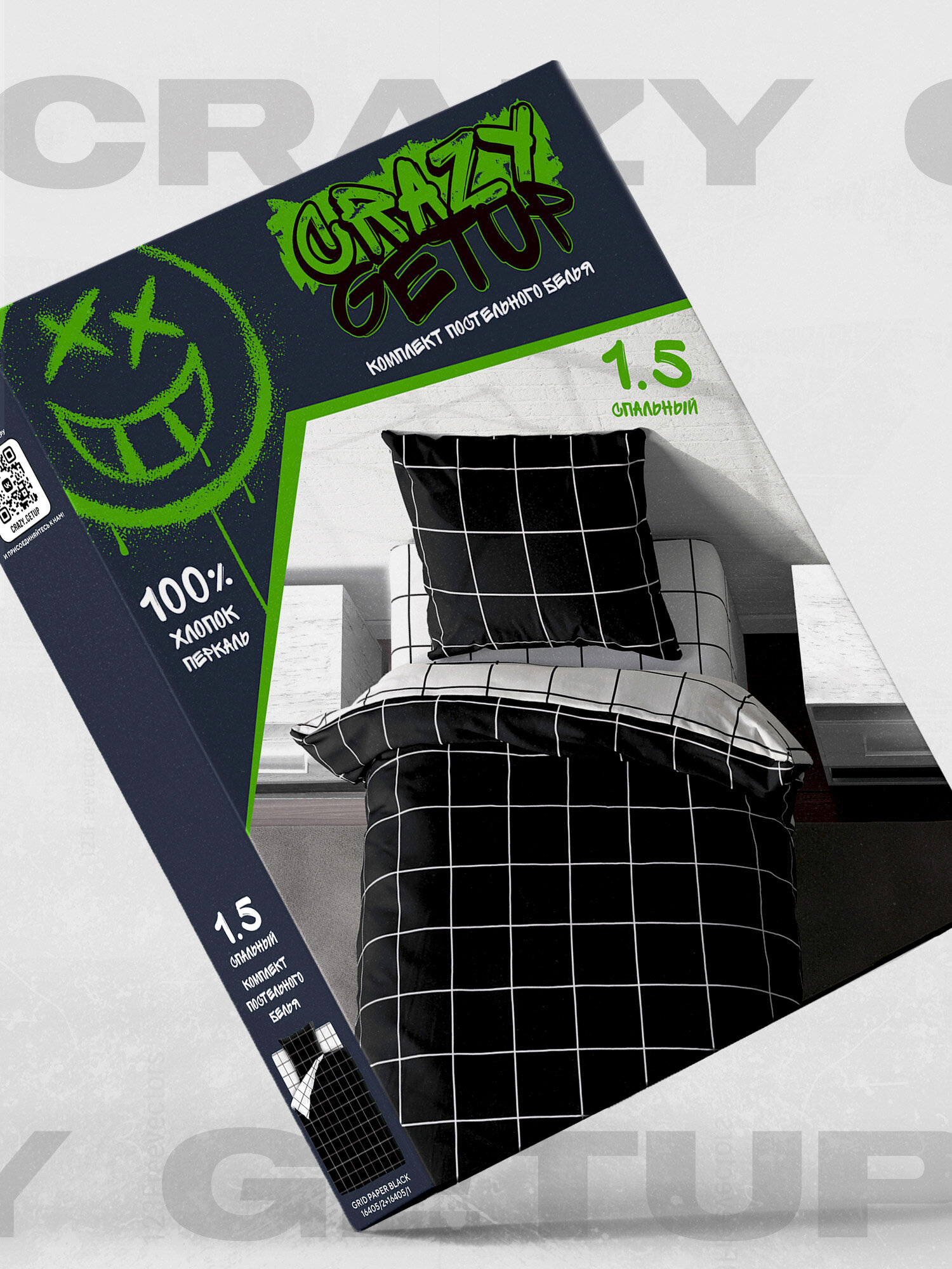 Постельное белье 1.5 спальное Crazy Getup, Перкаль, нав. 70х70, Grid paper black (Grid paper)