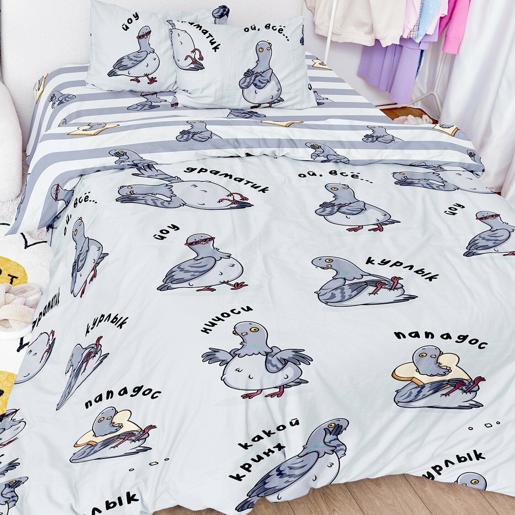 Постельное белье 1.5 спальное Crazy Getup, Поплин, нав. 70х70, Моланг и Пиу Пиу