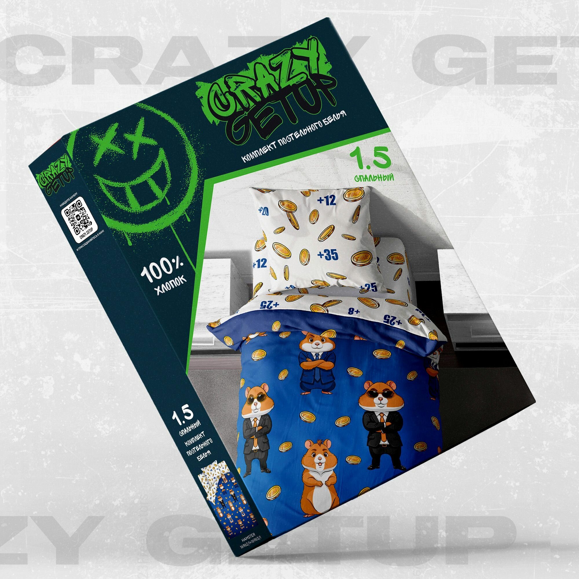СохранитьПостельное белье 1.5 спальное Crazy Getup, Поплин, нав. 70х70, Hamster интересное: