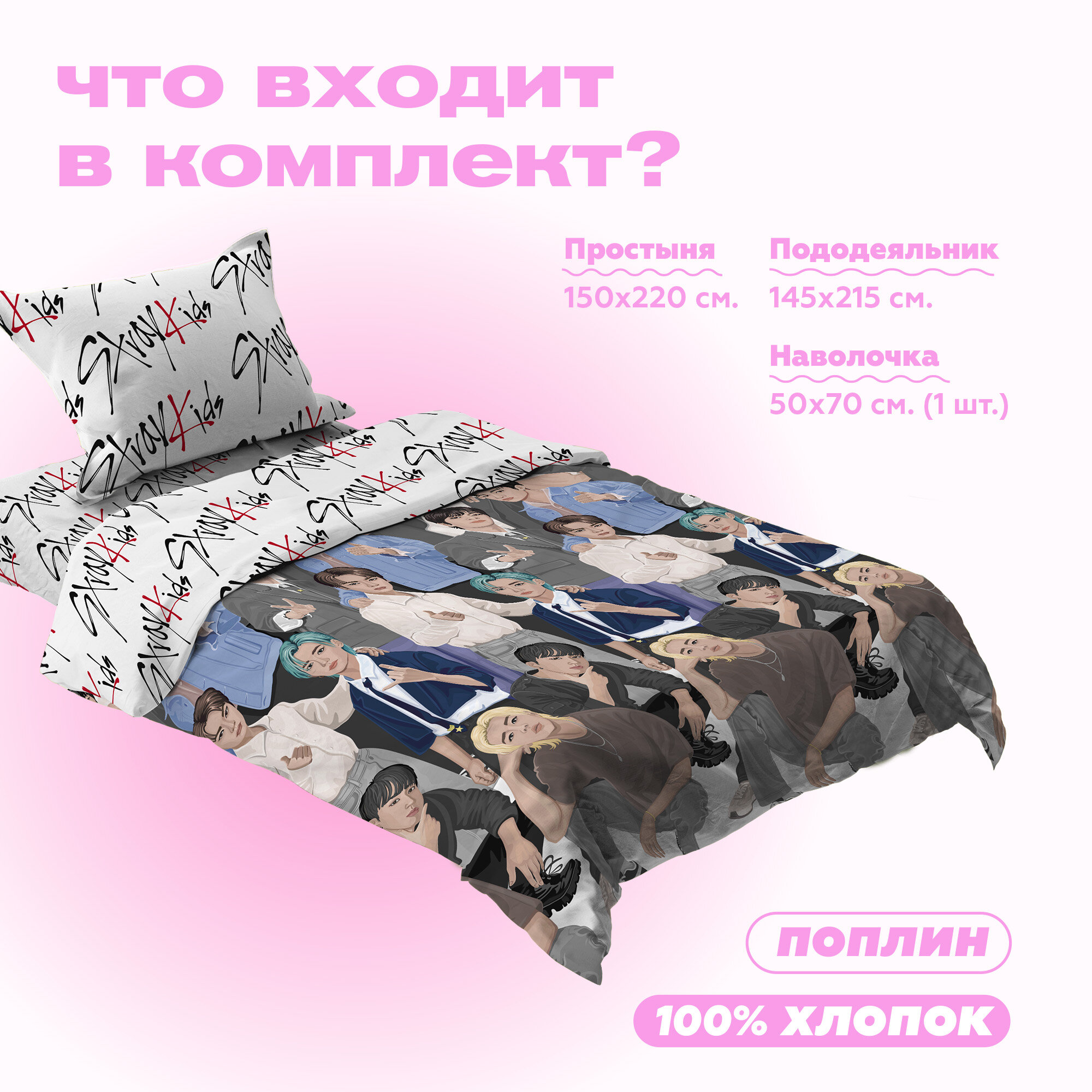 Постельное белье 1.5 спальное Crazy Getup, Перкаль, нав. 70х70, Stray kids
