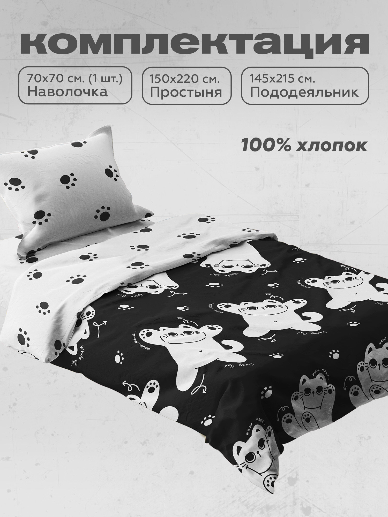 Crazy Getup, Комплект постельного белья 1 5 спальный, Поплин, 1 нав. 50х70, White cats
