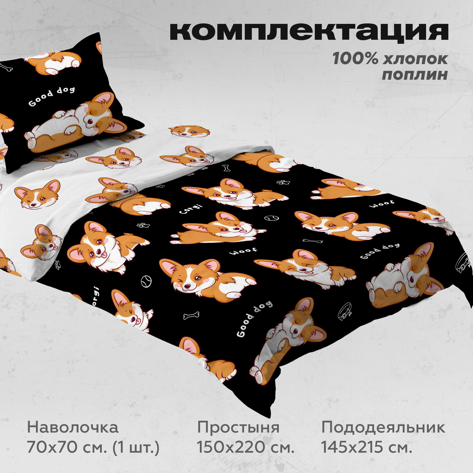 Постельное белье 1.5 спальное Crazy Getup, Поплин, нав. 50х70, Capybara black