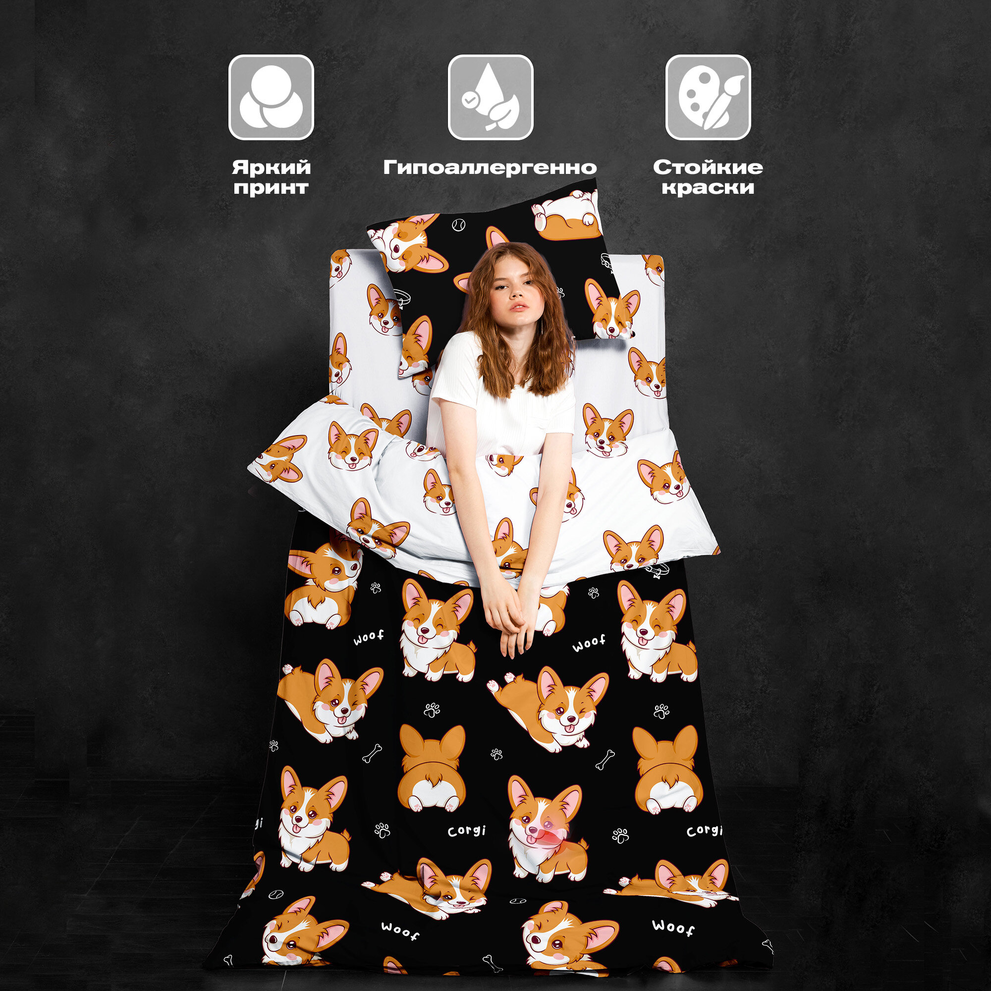 СохранитьПостельное белье 1.5 спальное Crazy Getup, Поплин, нав. 70х70, Korgi интересное: