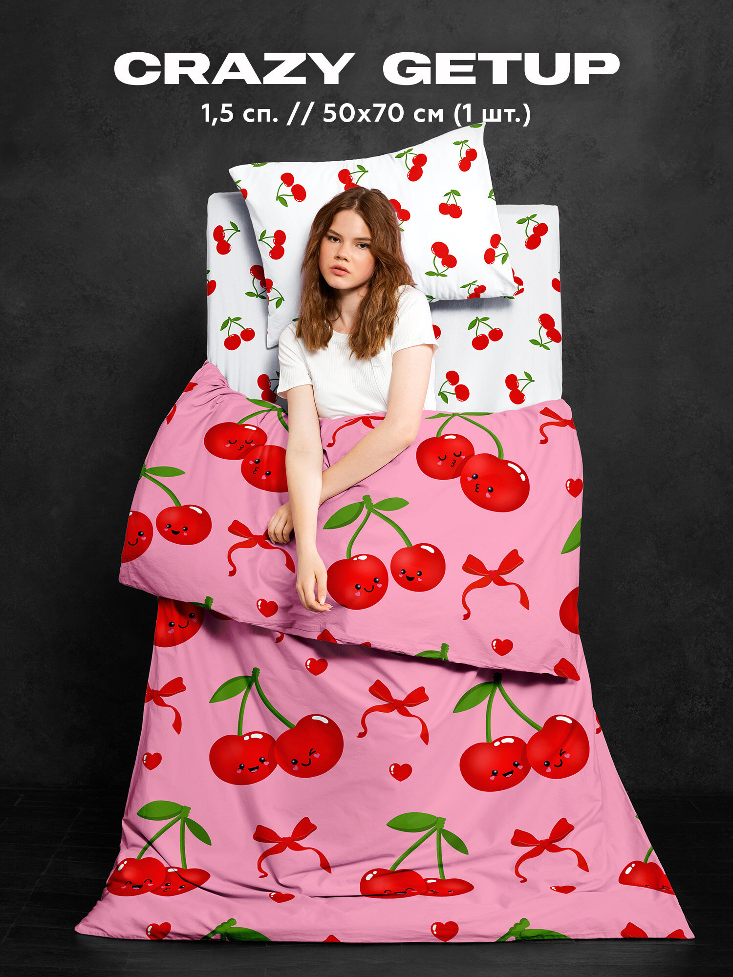 СохранитьПостельное белье 1.5 спальное Crazy Getup, Поплин, нав. 50х70, Cherry twins, Вишенки, Вишня интересное: