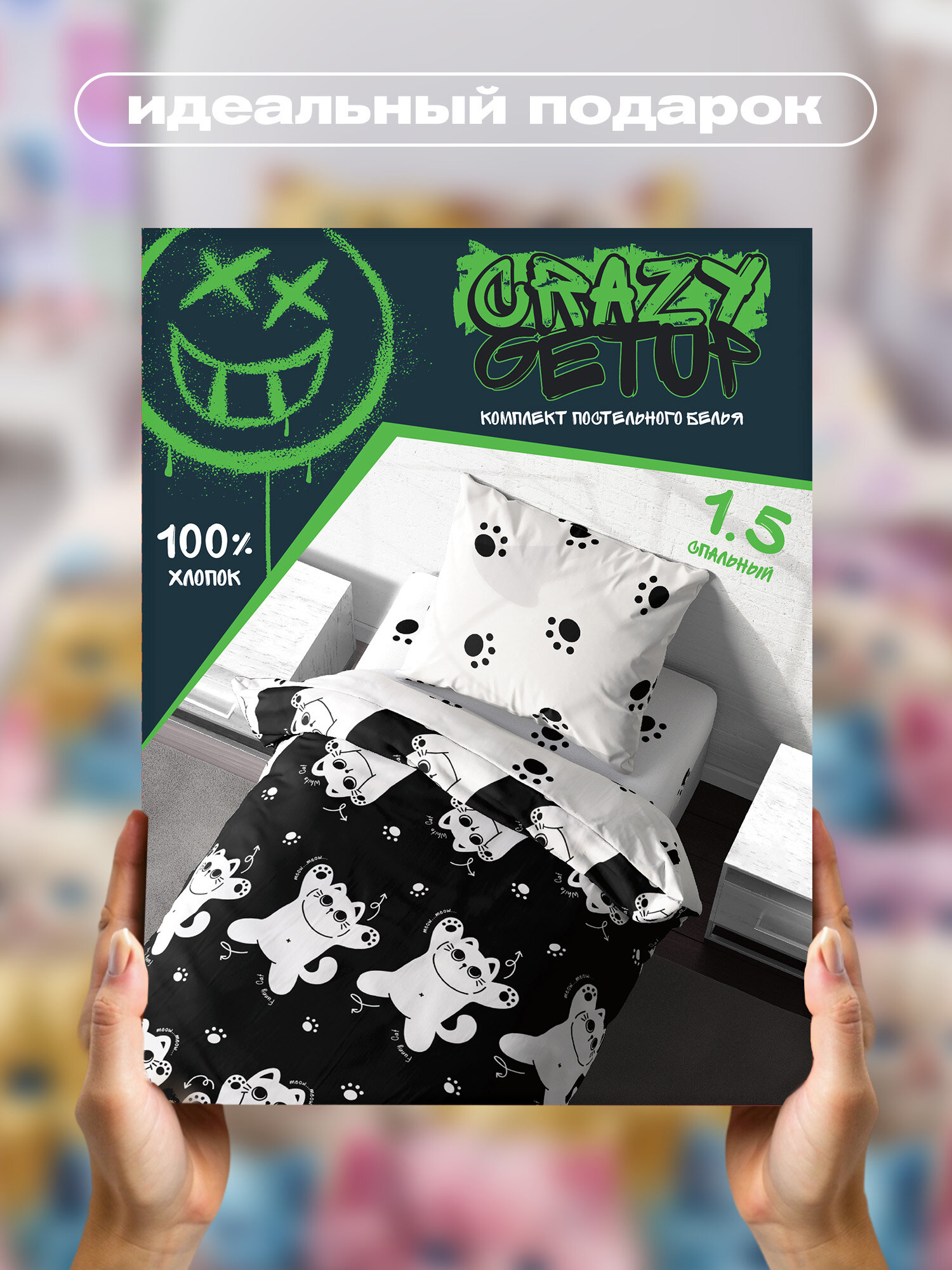 Постельное белье 1.5 спальное Crazy Getup, Поплин, нав. 50х70, Fluffy