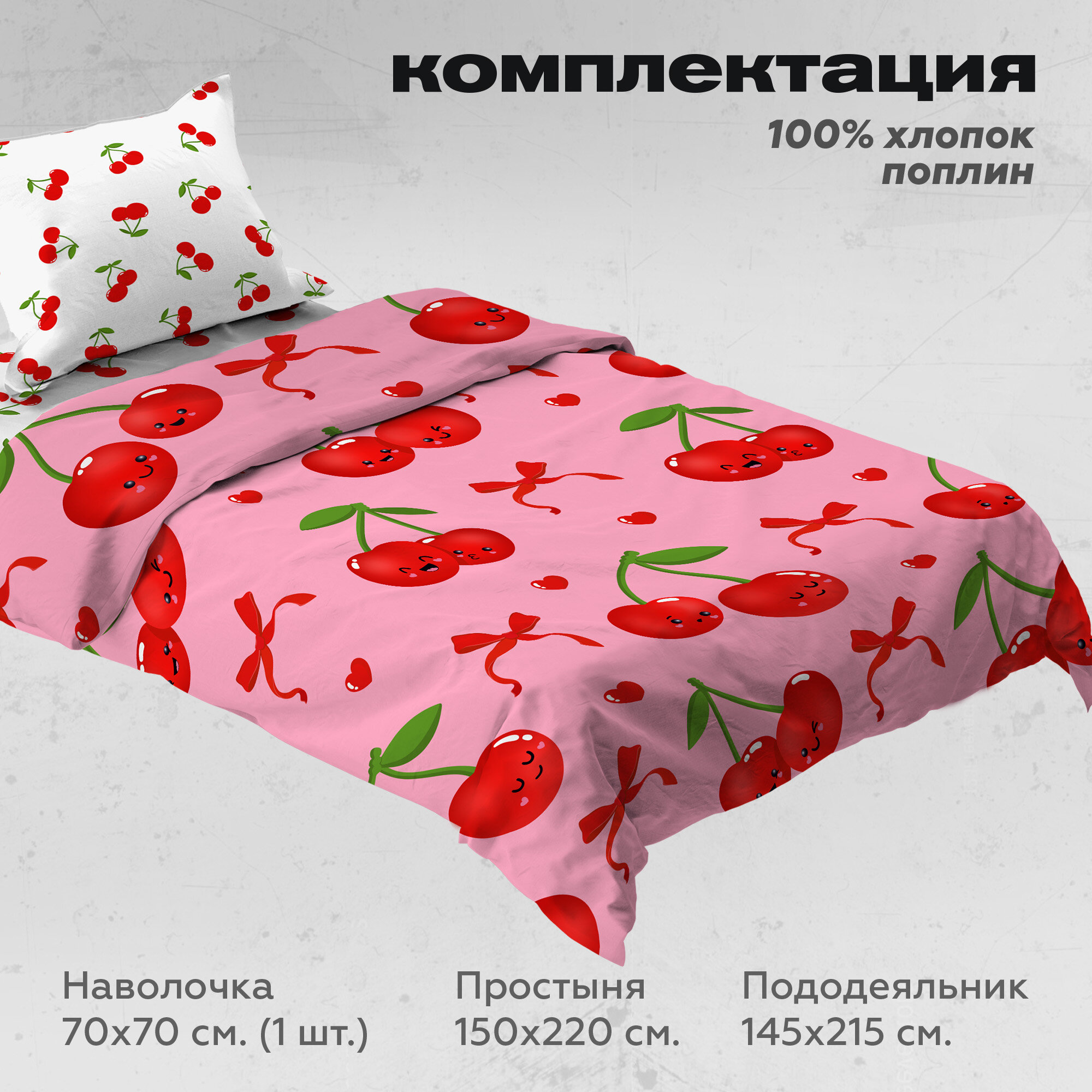 Постельное белье 1.5 спальное Crazy Getup, Поплин, нав. 50х70, Cherry twins, Вишенки, Вишня