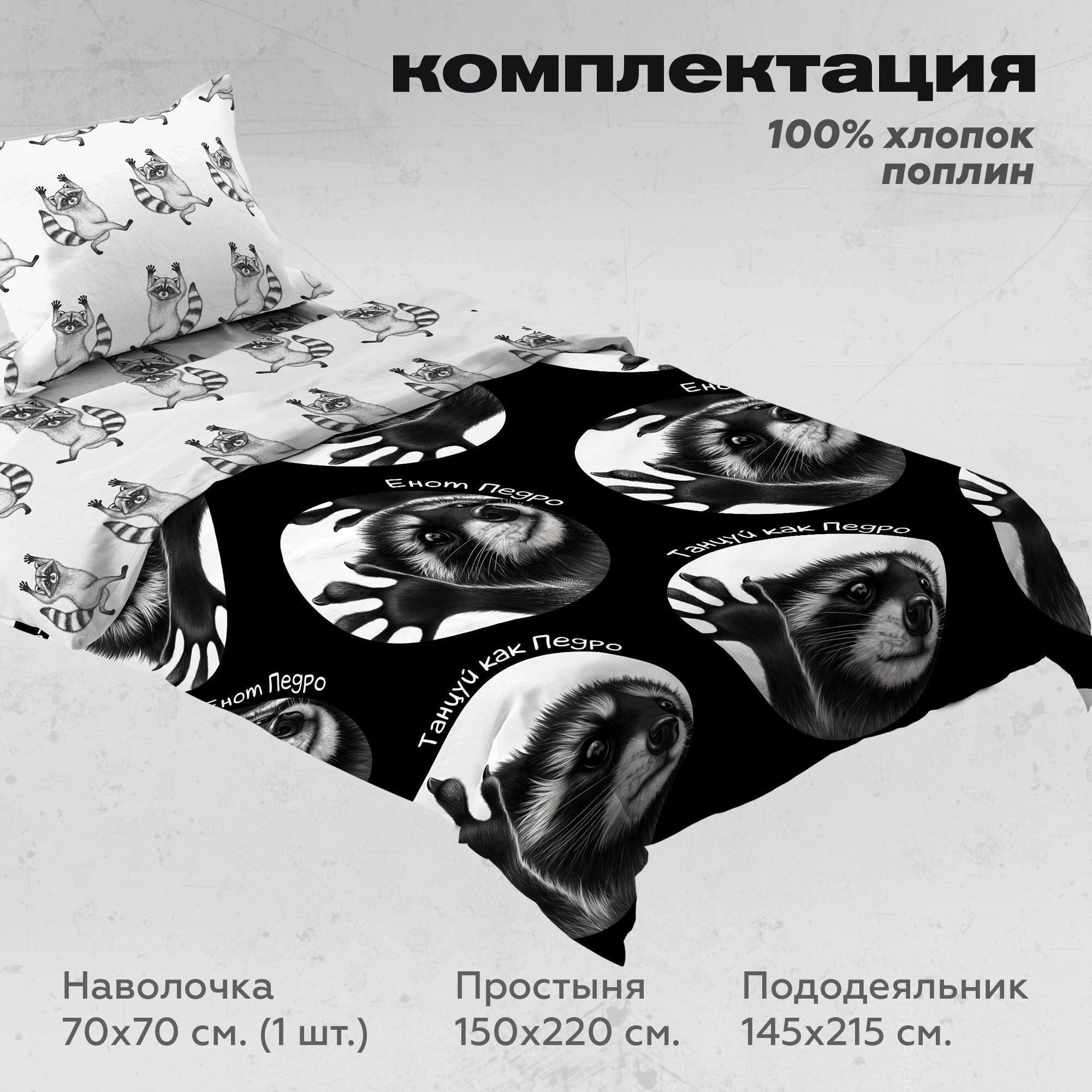 Постельное белье 1.5 спальное Crazy Getup, Бязь, нав. 70х70, Funny capy, светится в темноте