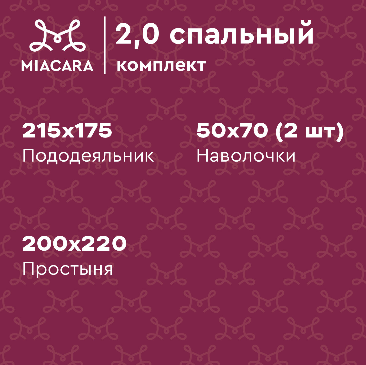 Постельное белье 2 спальное Mia Cara, Бязь, нав. 70х70, Ирбис