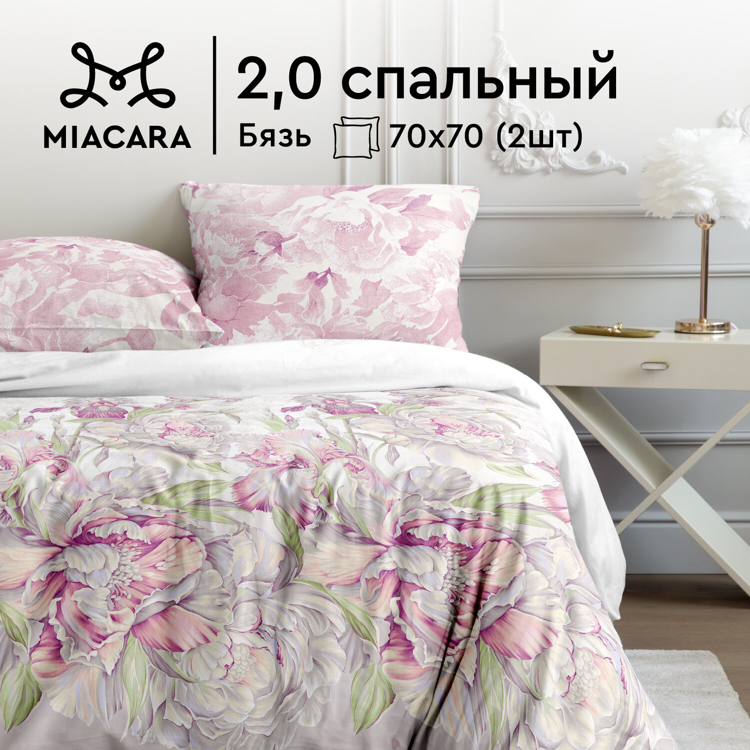 Купить Постельное белье 2 спальное Mia Cara, Бязь, нав. 70х70, Царство пионов
