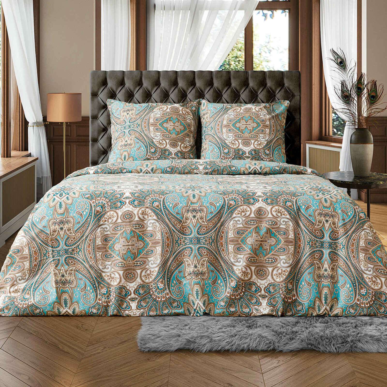 Постельное белье Евро Mia Cara, Бязь, наволочки 50х70, Малахитовая шкатулка