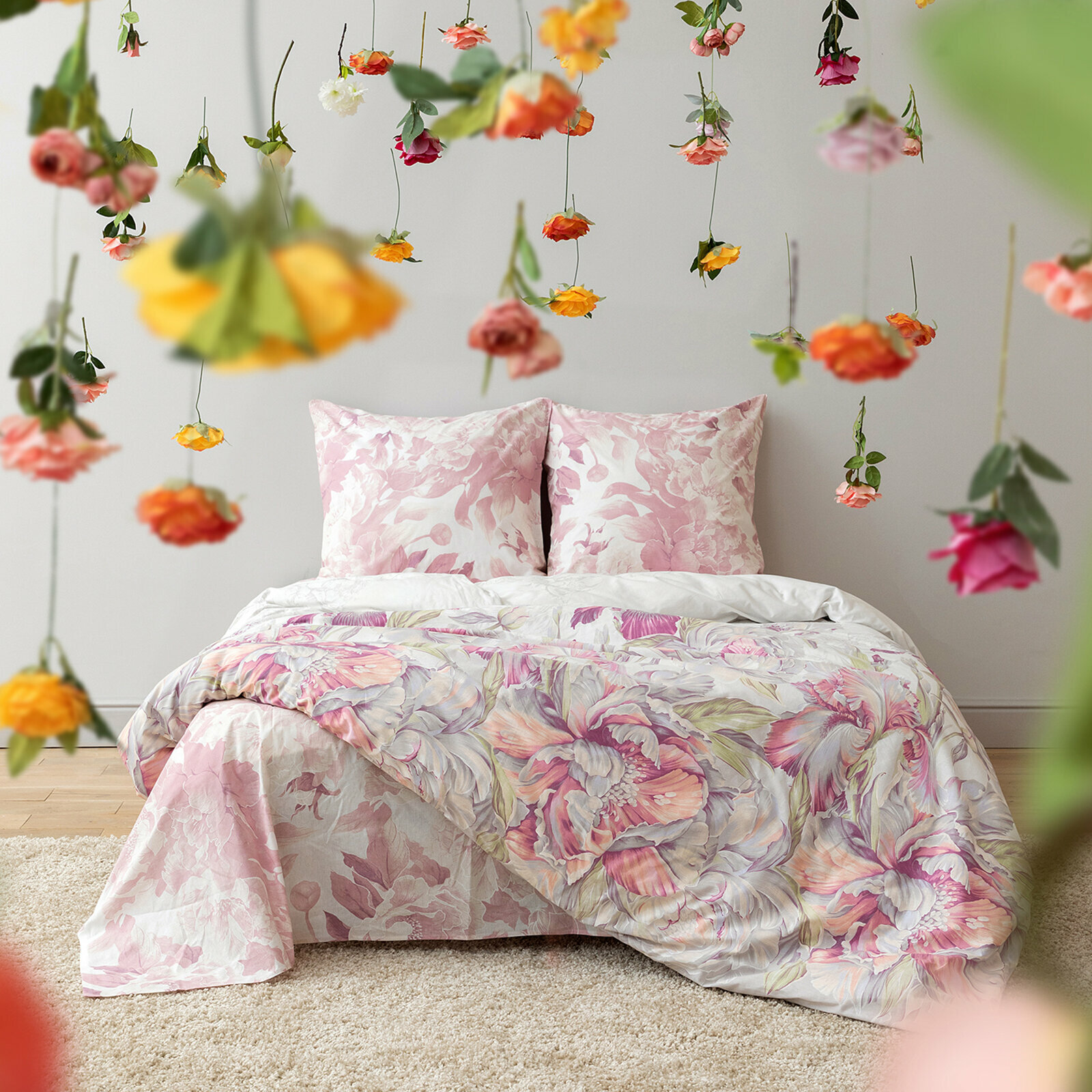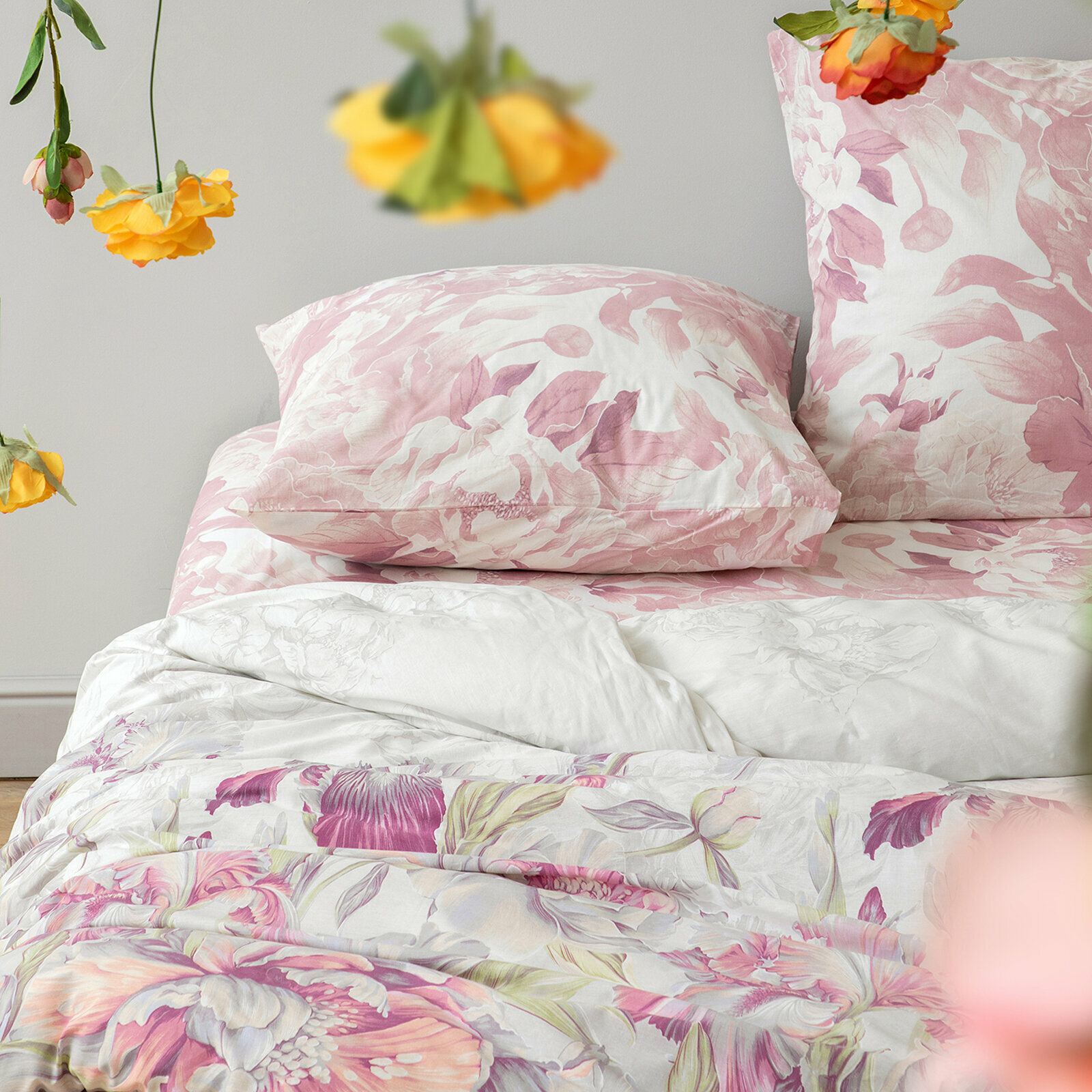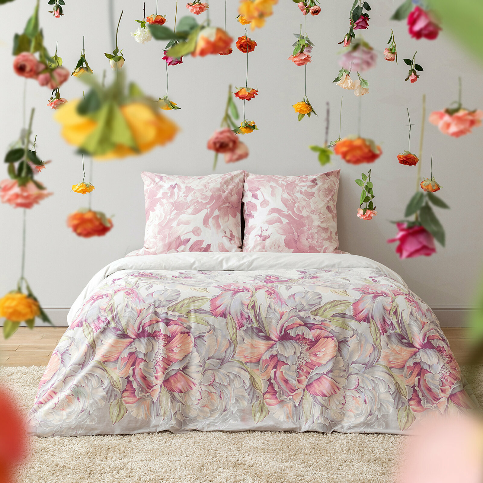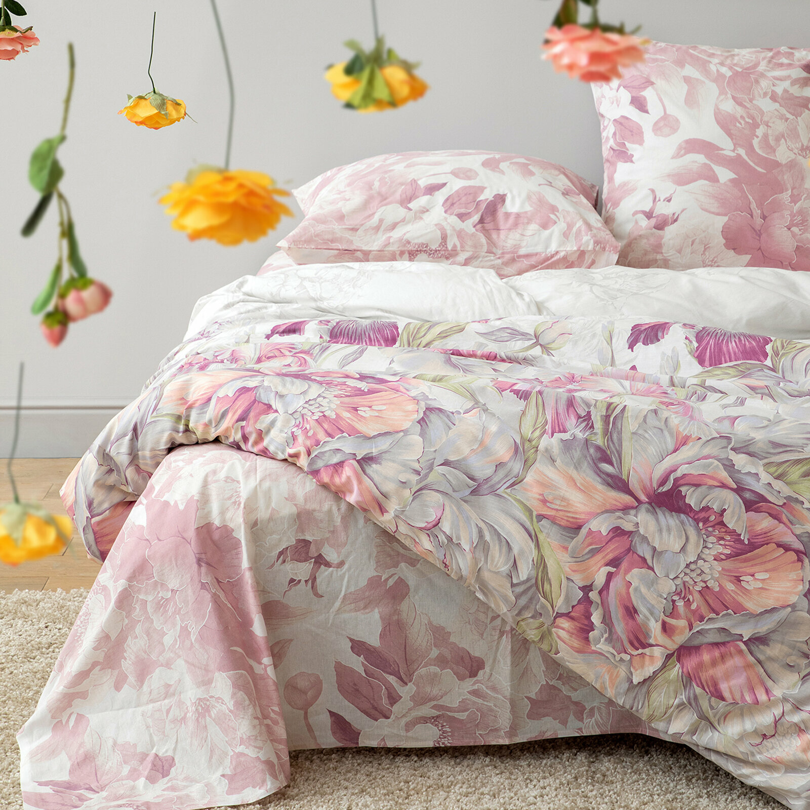 Купить Постельное белье Евро Mia Cara, Бязь, наволочки 70х70, Царство пионов