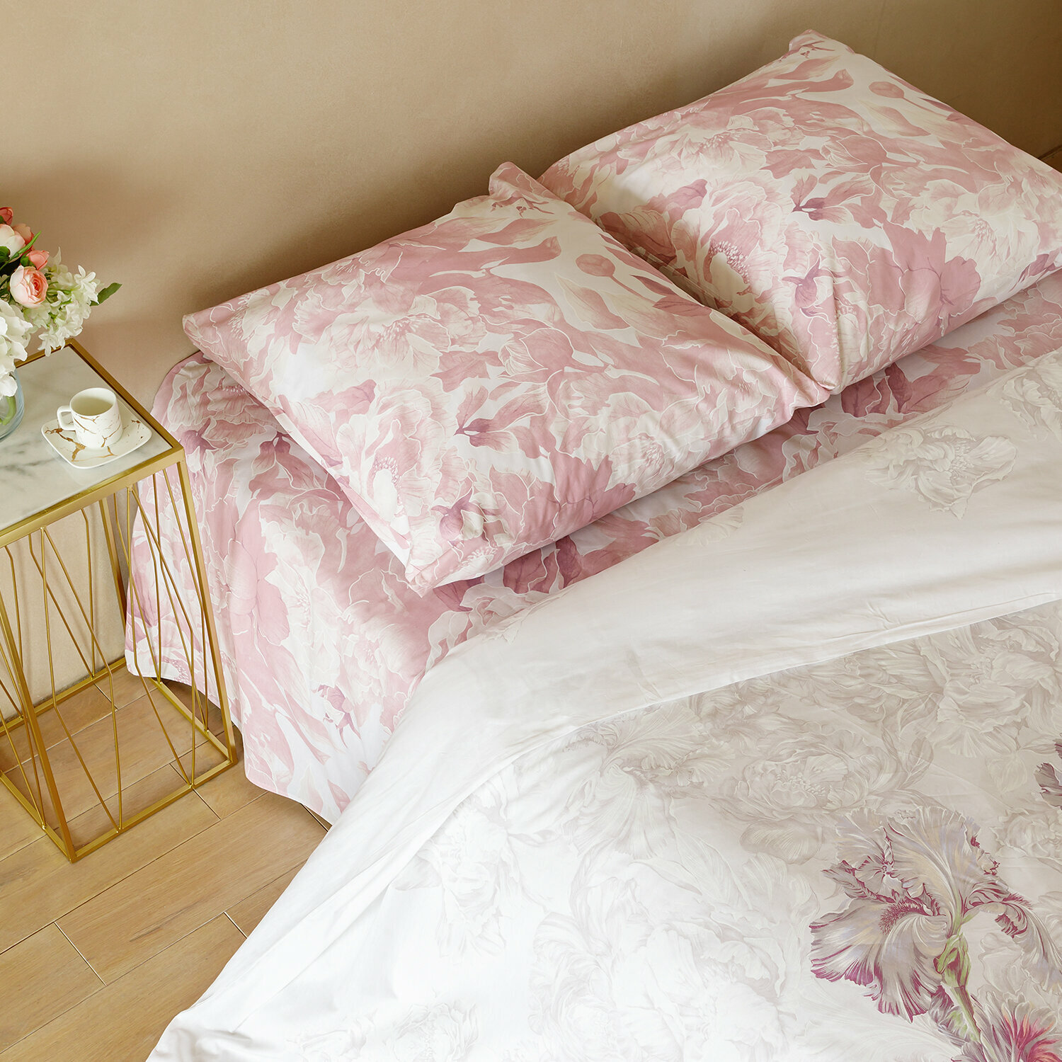 СохранитьПостельное белье Евро Mia Cara, Бязь, наволочки 70х70, Царство пионов интересное:
