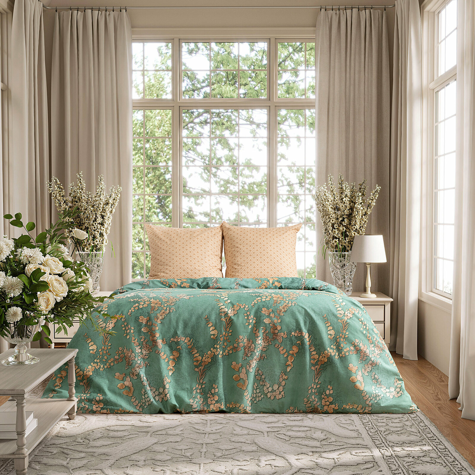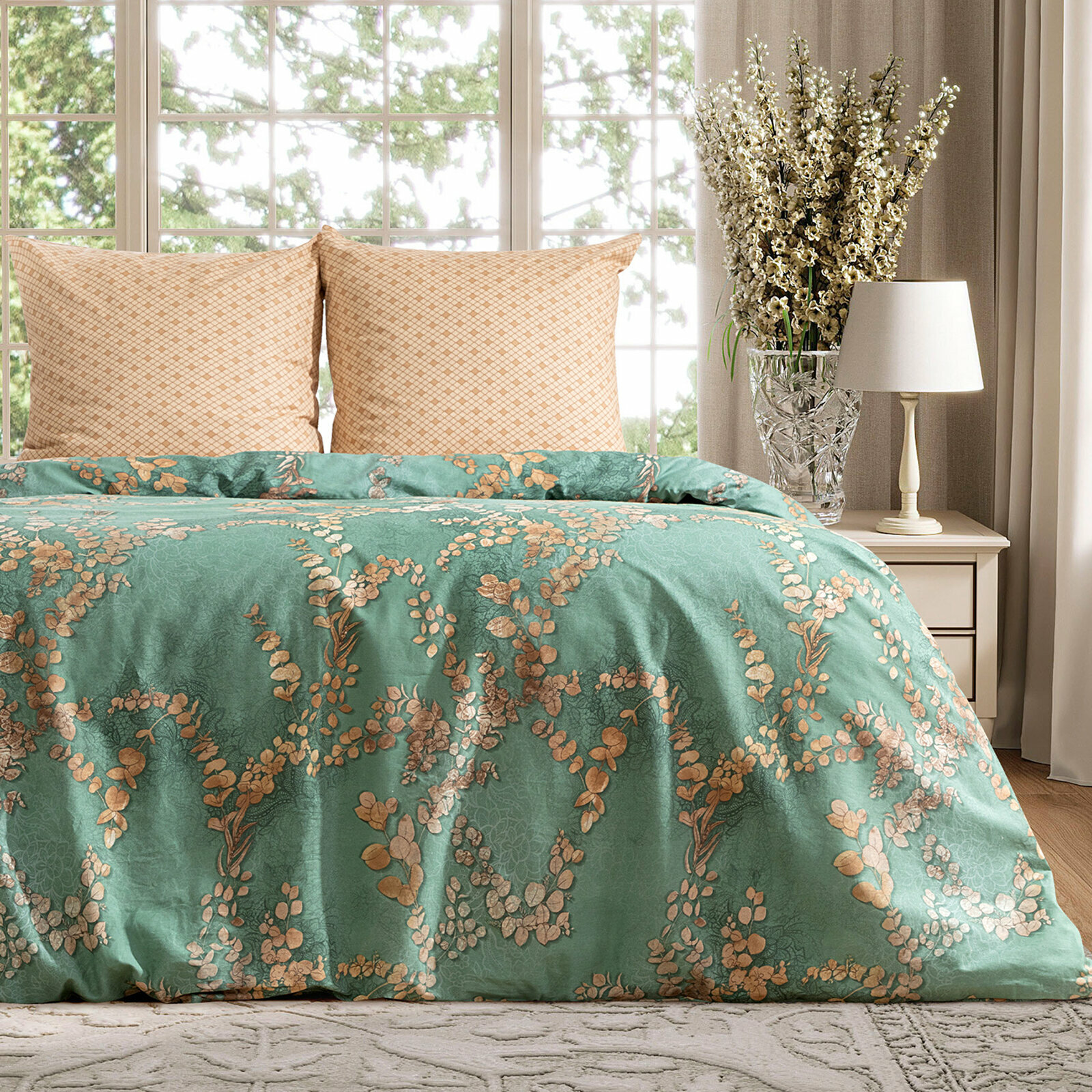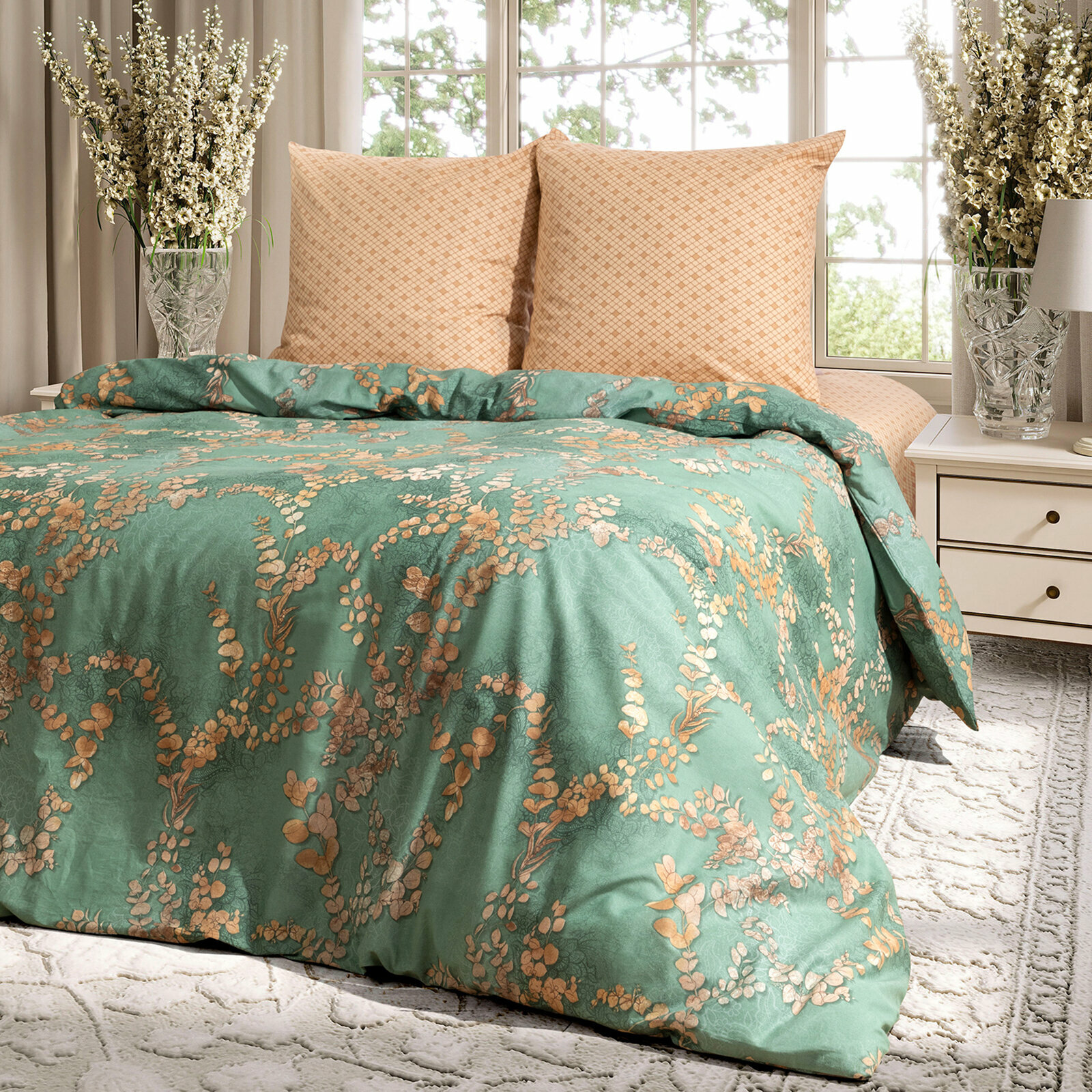 Купить Постельное белье 1.5 спальное Mia Cara, Перкаль, нав. 70х70, Таинственный сад, зеленый