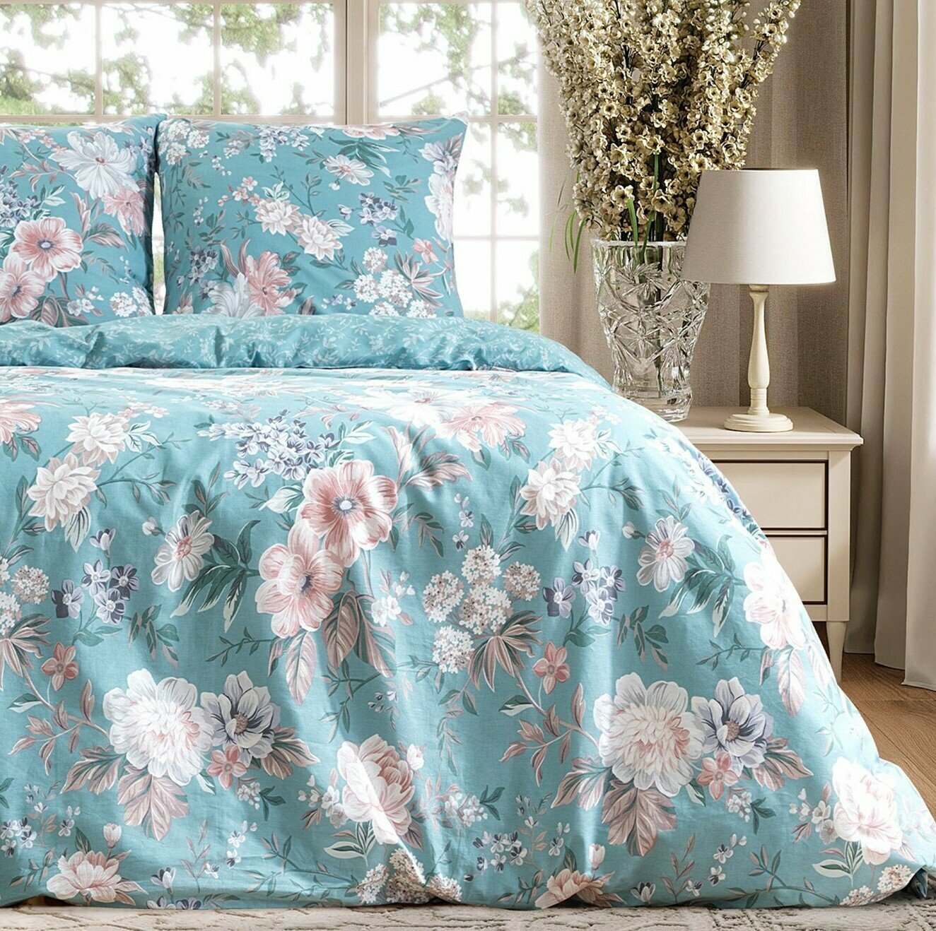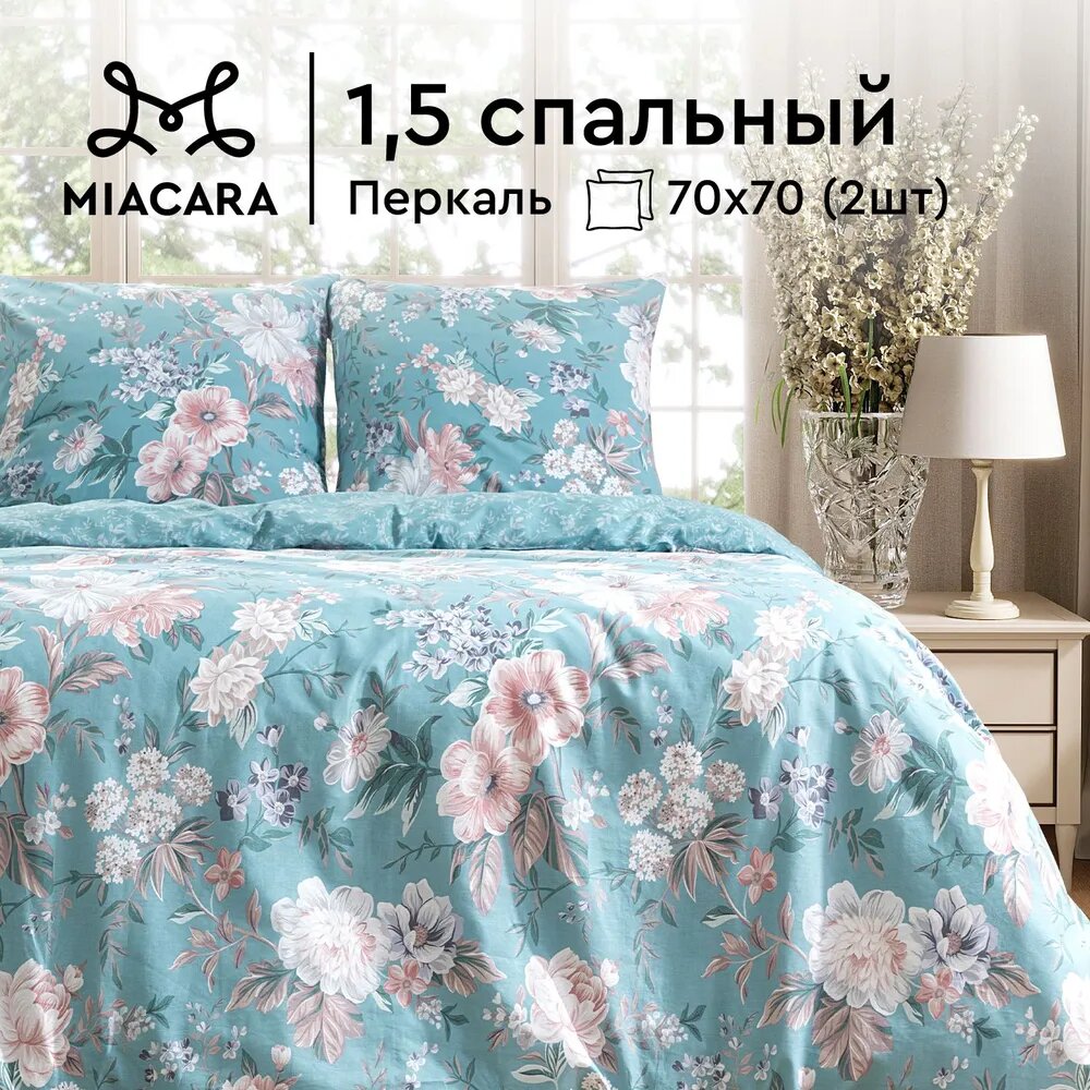 Купить Постельное белье 1.5 спальное Mia Cara, Перкаль, нав. 70х70, Чарующий сад, пастельно-бирюзовый